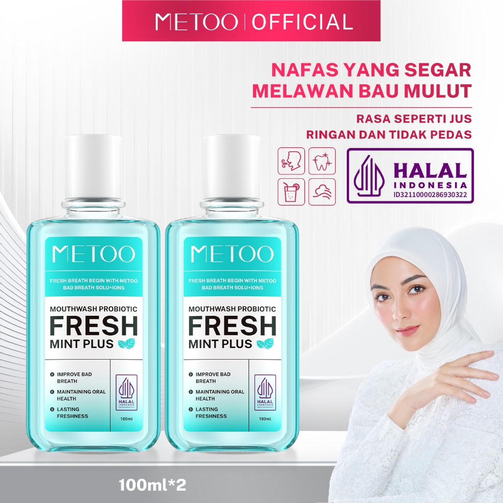 MeToo Mouthwash Fresh Mint 2*100ml / nafas segar / menghilangkan bau mulut / kumur karang gigi / non-alkohol