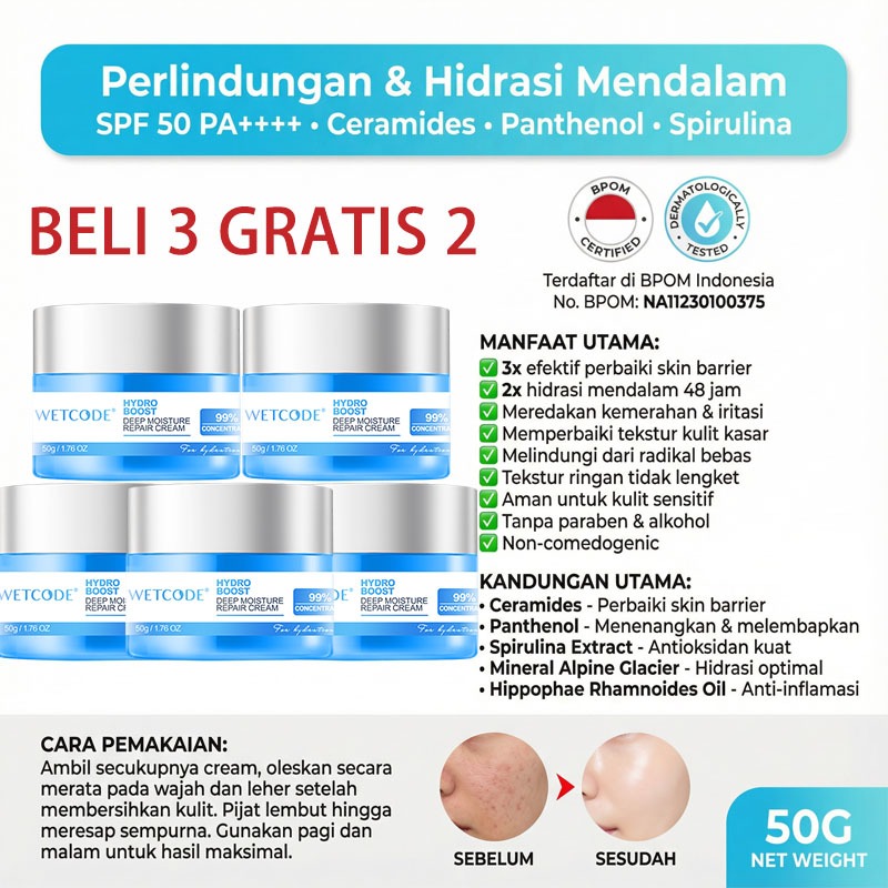 Cream Pelembab Wajah 50g Moisturizer Repair Barrier Pulihkan skincare Day & Night Cream Mengencang anti kerut l Mencerah kulit l Melembap l Anti penuaan l menghilang kerutan wajah l cabut komedo l Atasi kulit kusam Kasar Rentan jerawat oily & dry skin