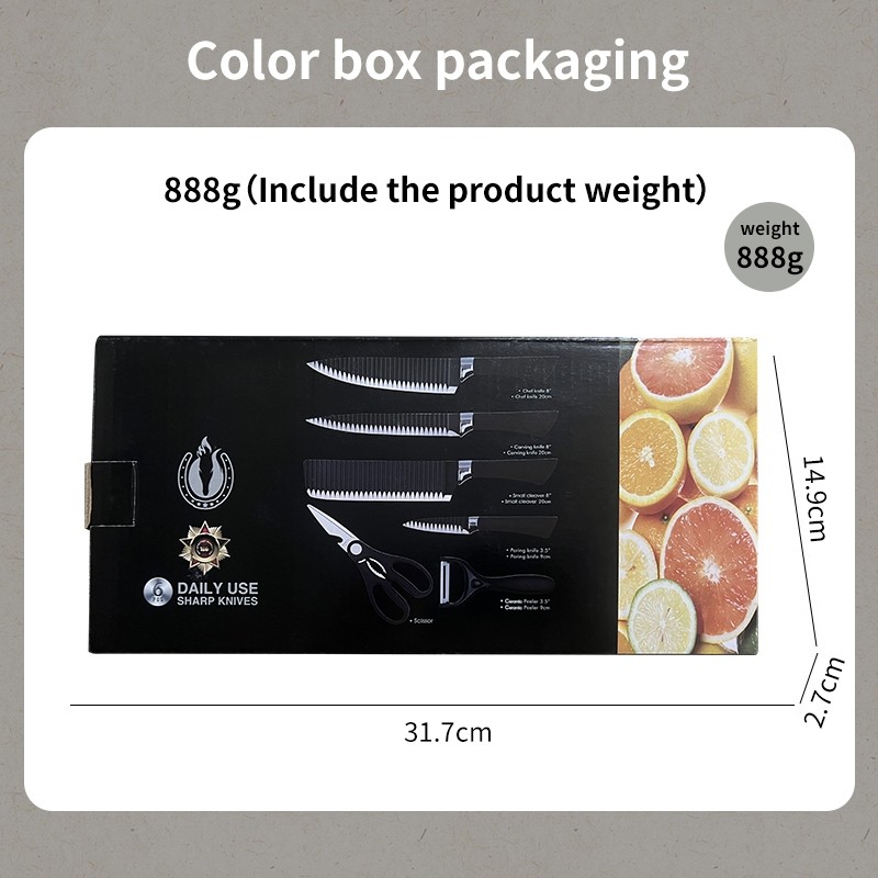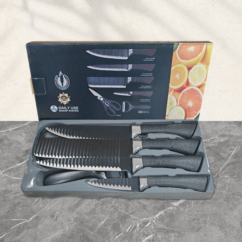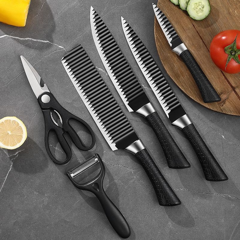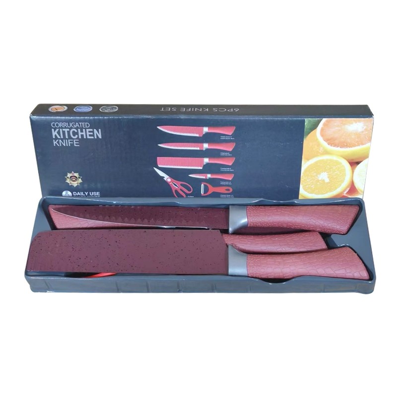 Pisau Set Jerami 6 in 1 Warna Warni Pisau Keramik Gelombang Anti Karat Berkualitas Pisau Set Gandum
