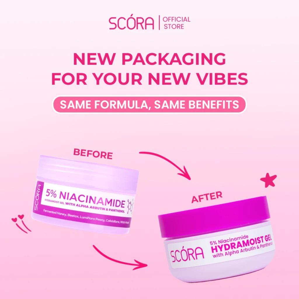 SCORA 5% Niacinamide Hydramoist Gel with Alpha Arbutin & Panthenol 45ML Mencerahkan Melembapkan Kulit / SCORA 5% Niacinamide Hydramoist Gel 45ml/100ml Pelembab Wajah yang Mencerahkan Kulit Memperbaiki Skin Barrier dan Perfecting Make Up