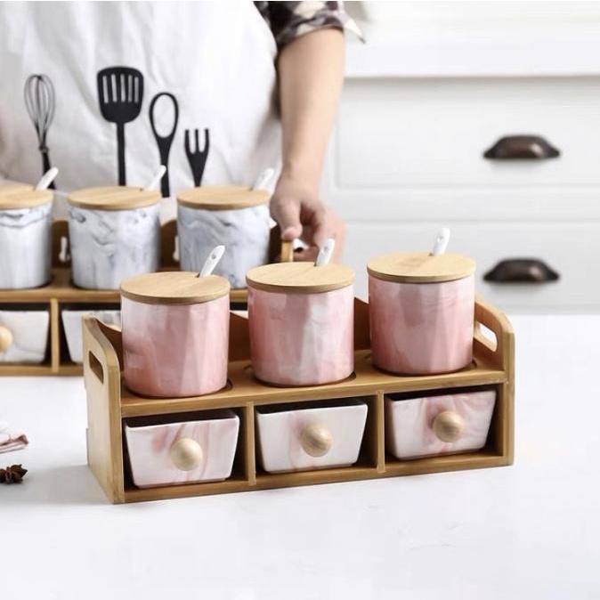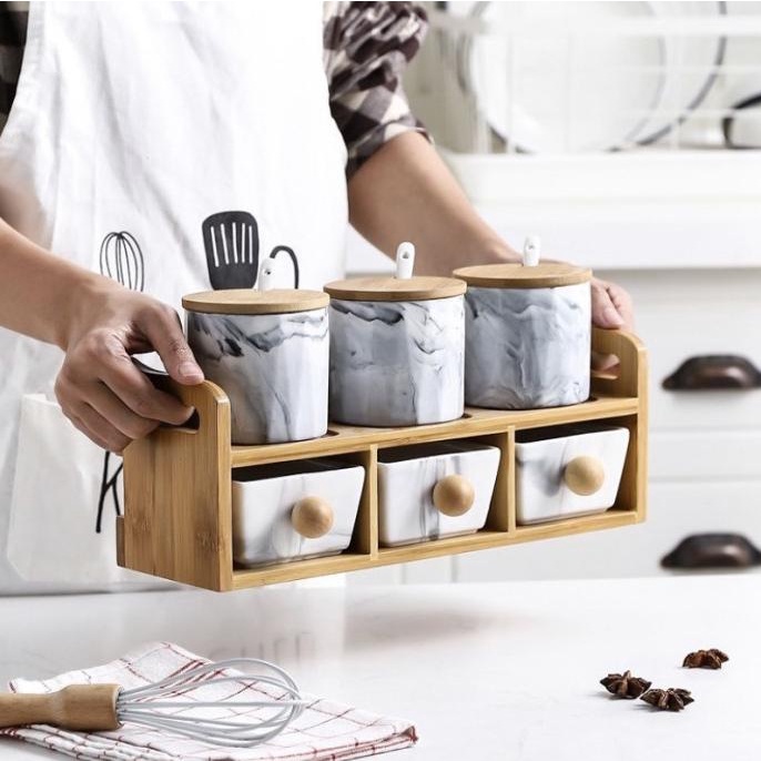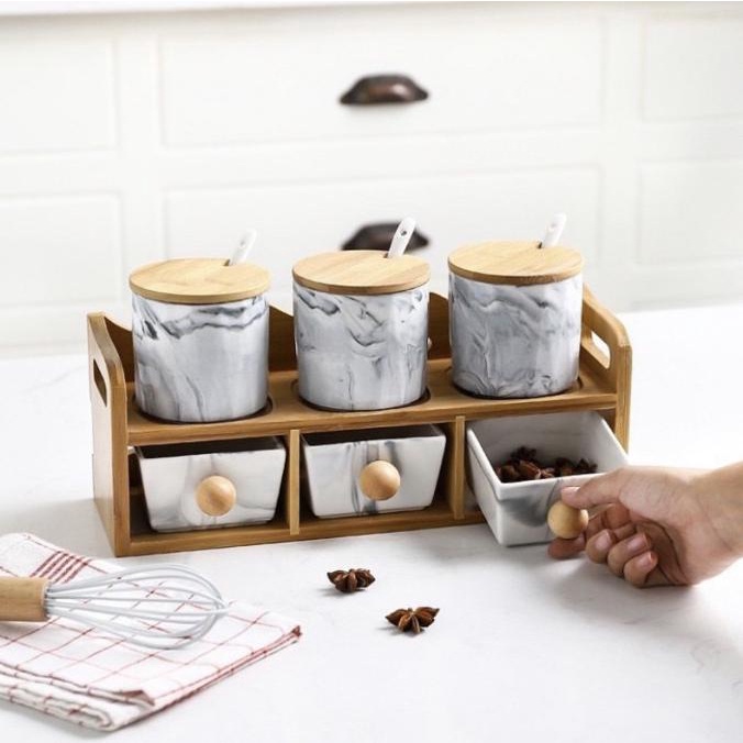 Condiment Ceramic Marble Stacking Holder ( Tempat Bumbu )
