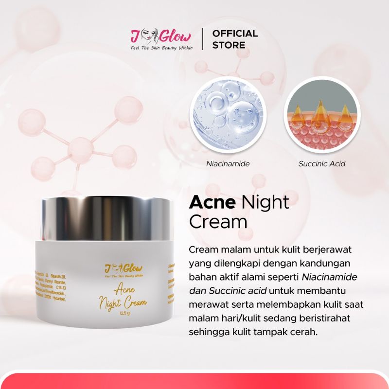 Jglow Night Cream 12,5gr – Cerahkan Wajah, Atasi Flek & Jerawat, Anti Aging | BPOM Resmi