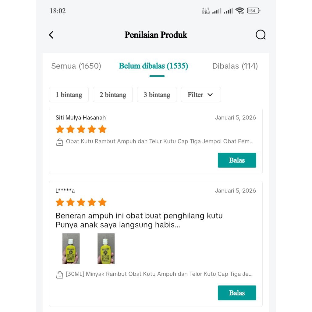 [PROMO] Minyak Rambut Pembasmi Kutu Dan Telurnya Ampuh Obat Kutu Rambut Dan Telurnya Cap Tiga Jempol