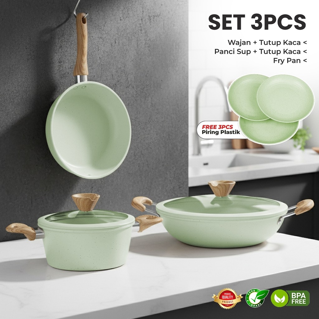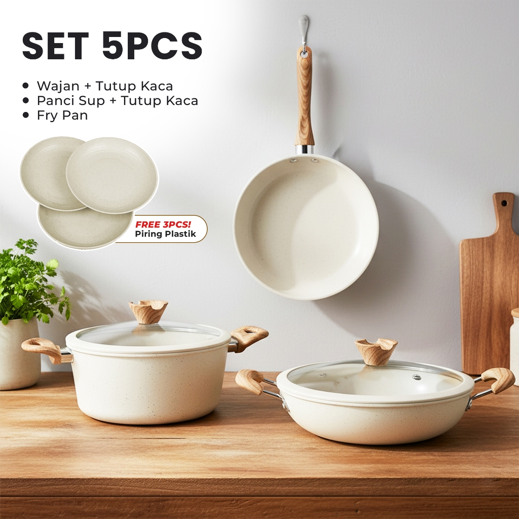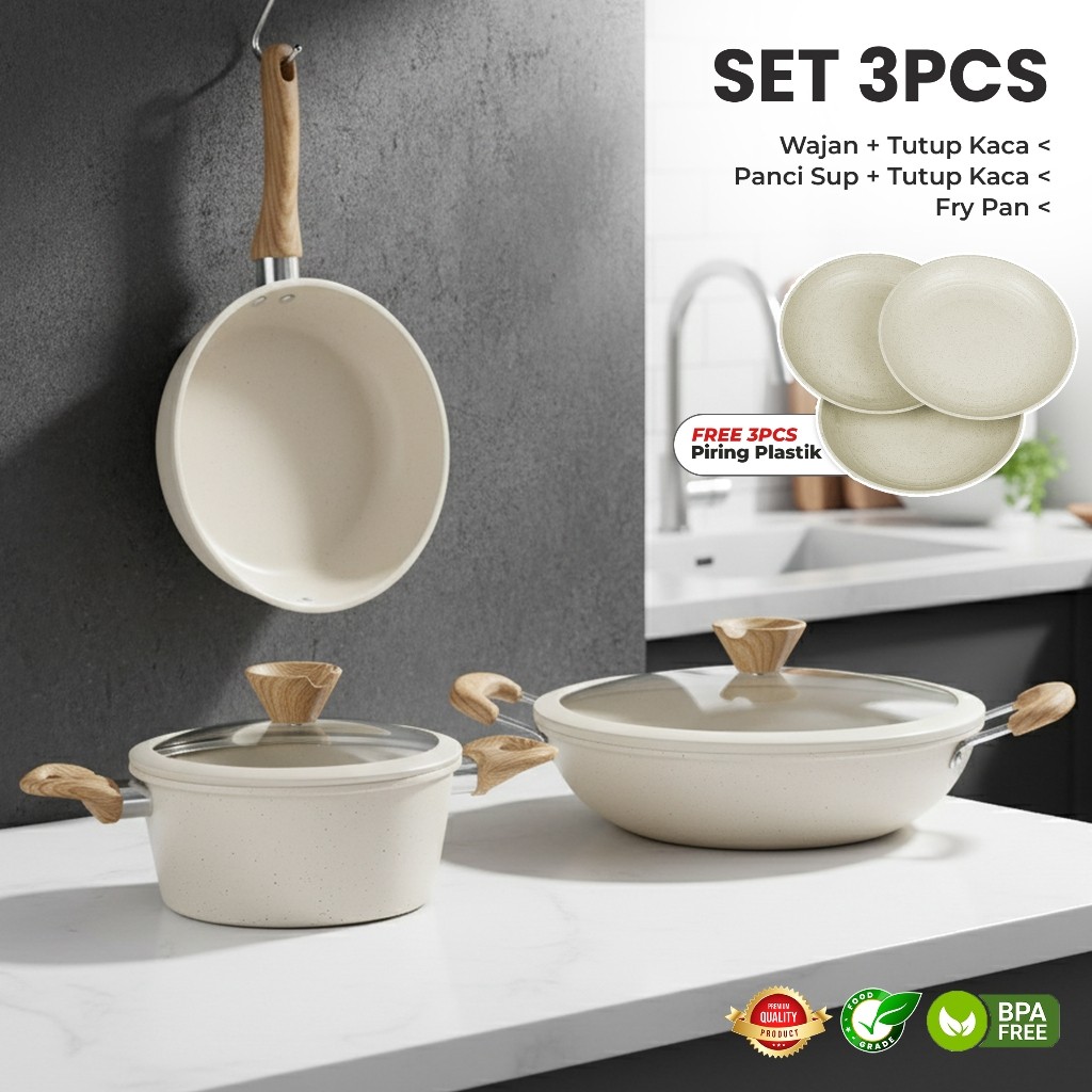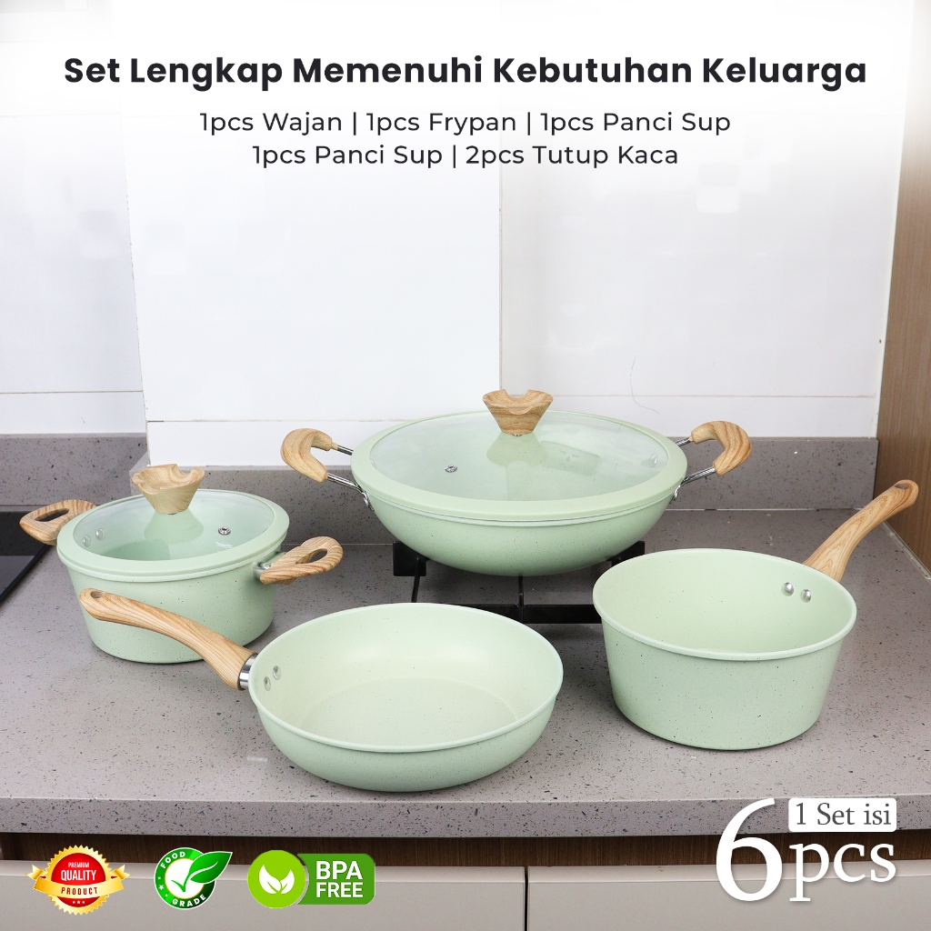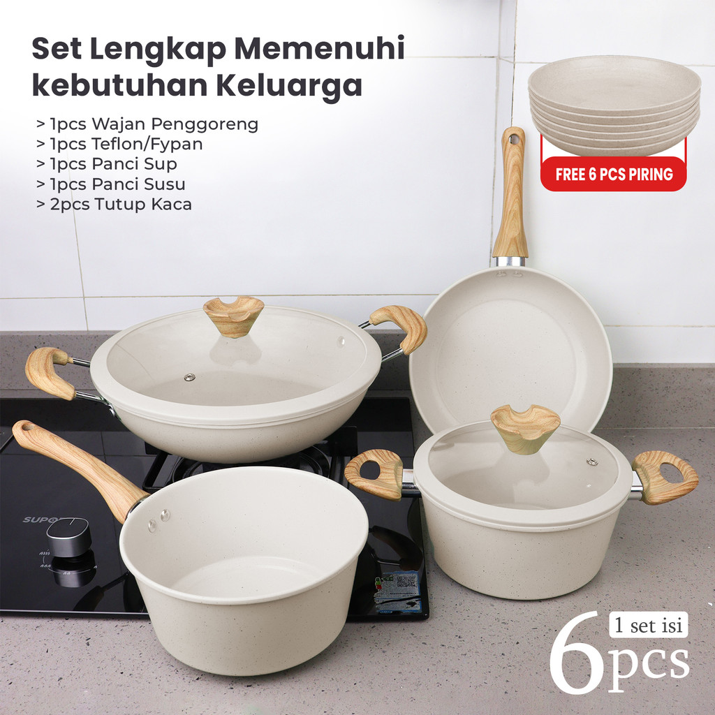 (FREE PIRING)Set Panci Marble 6 Pcs Anti Lengket - Panci Wajan Serbaguna Estetik