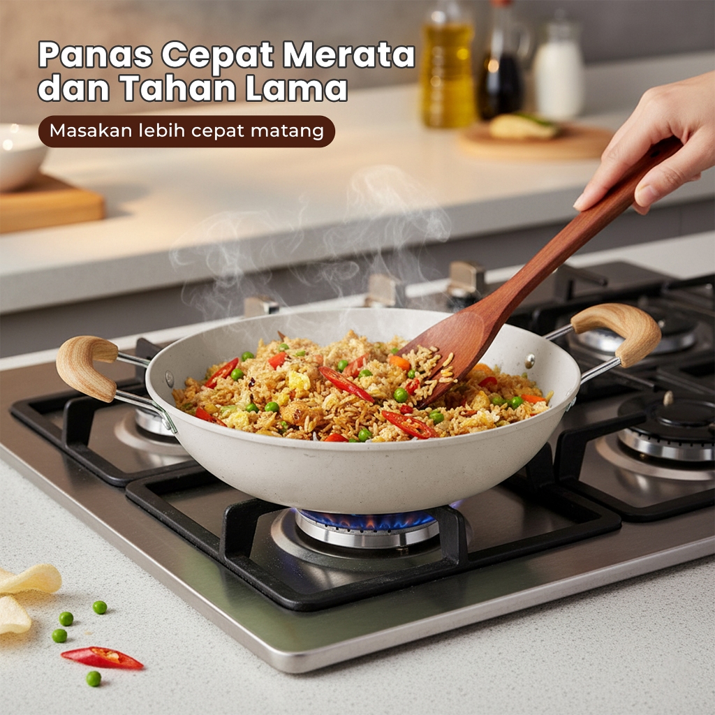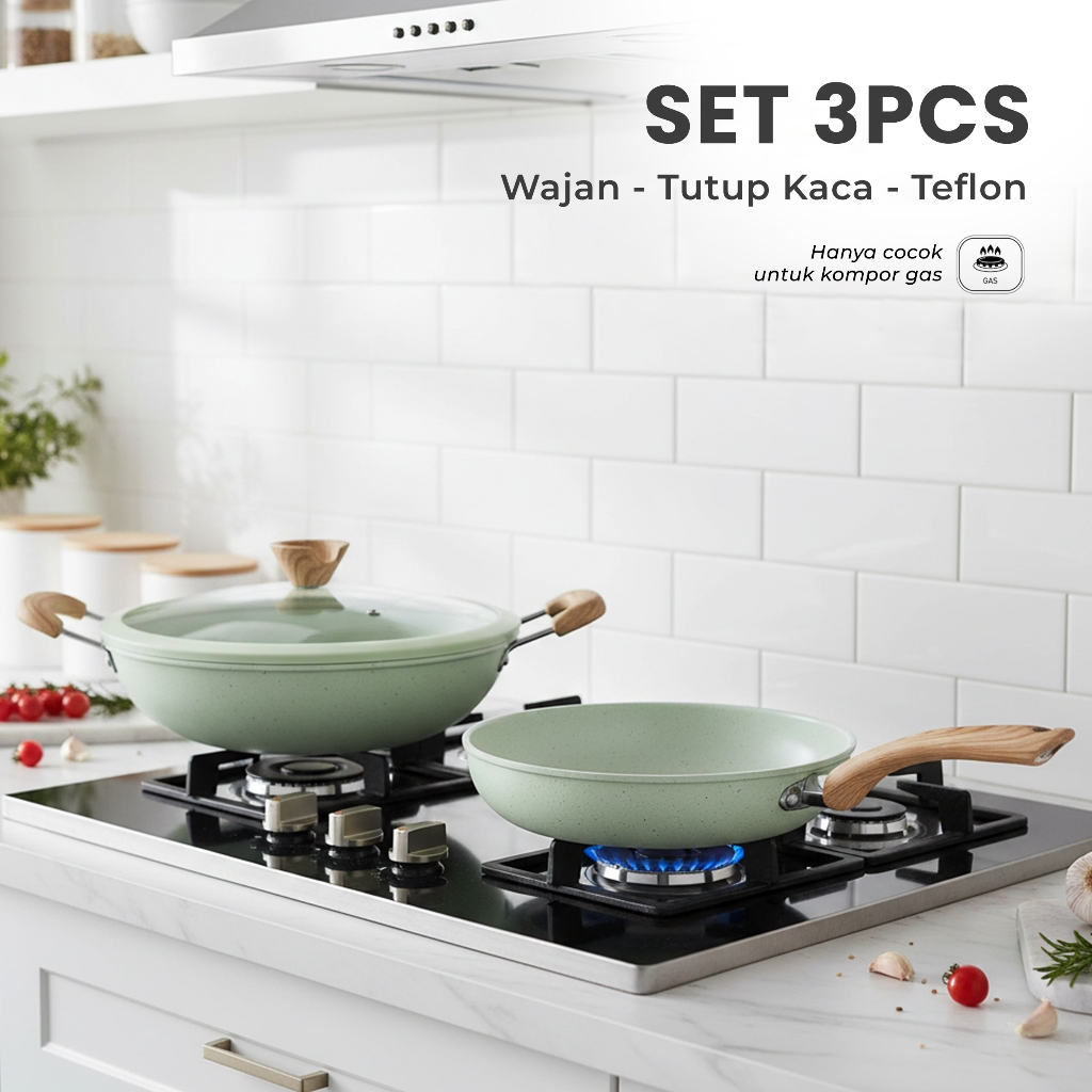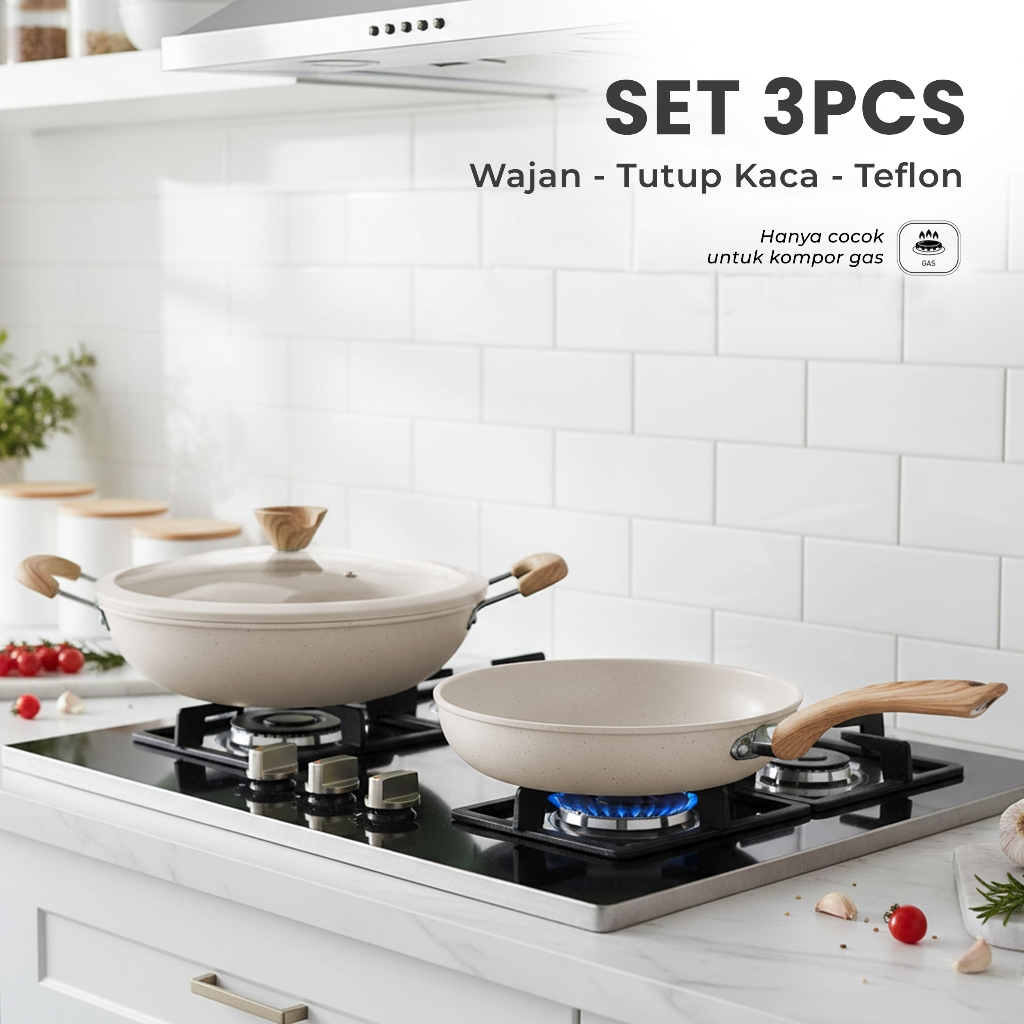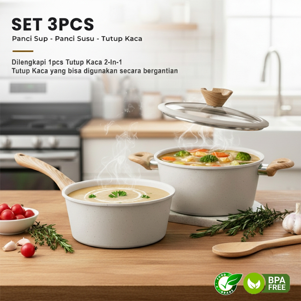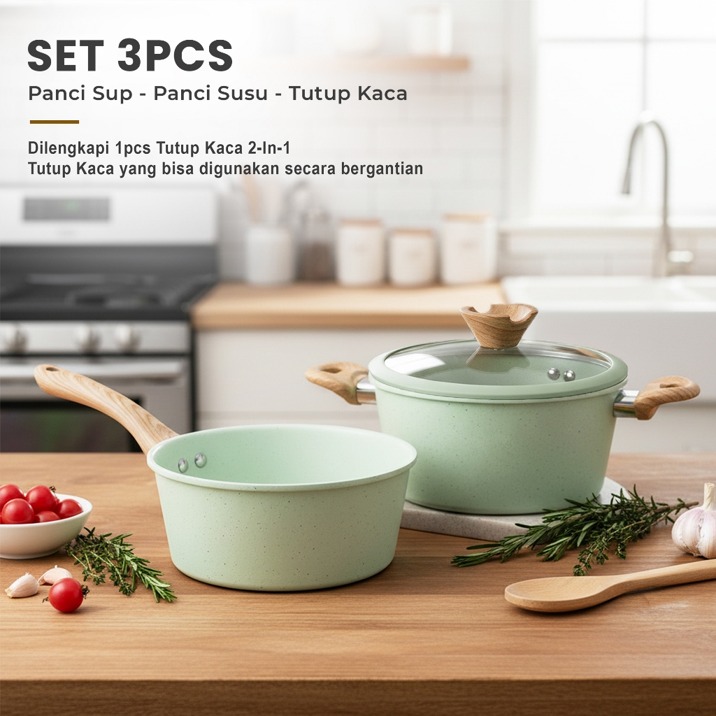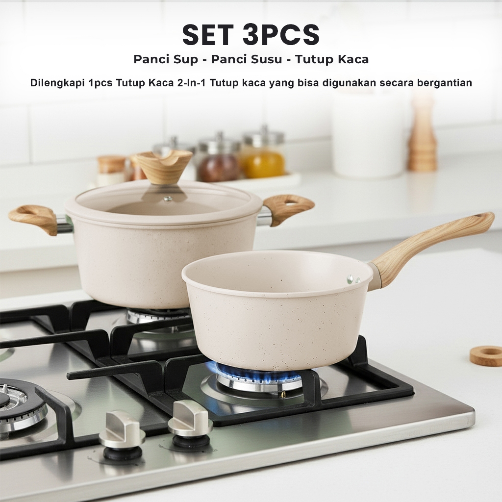 (FREE PIRING)Set Panci Marble 6 Pcs Anti Lengket - Panci Wajan Serbaguna Estetik