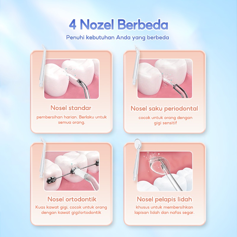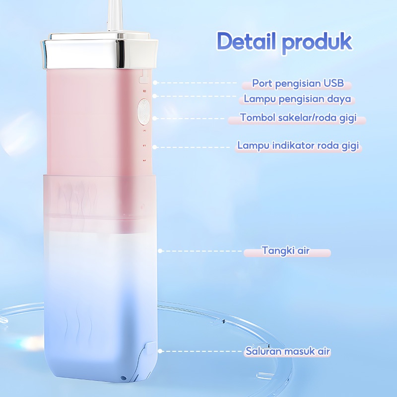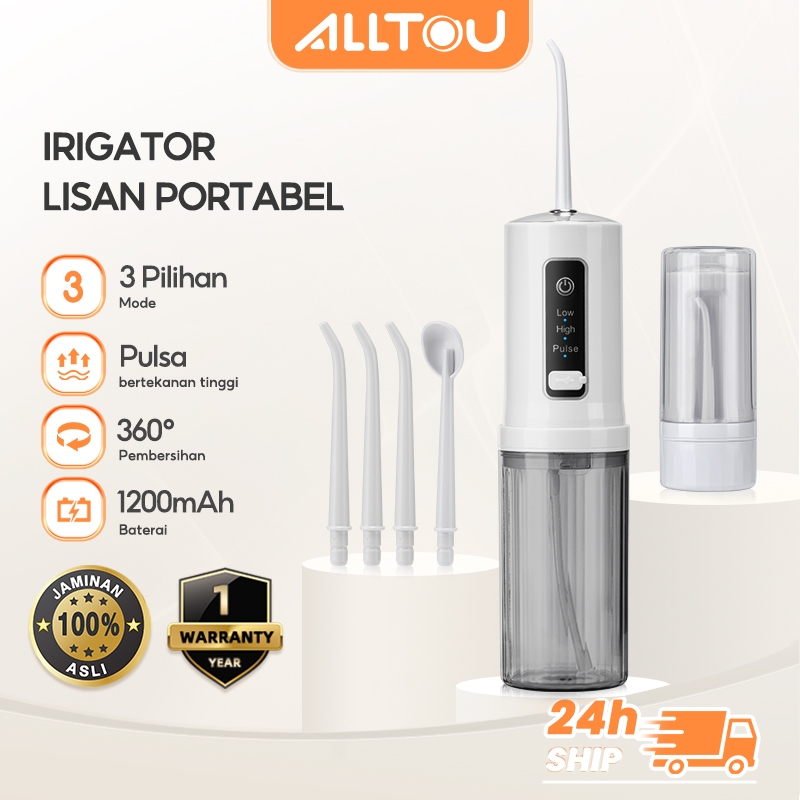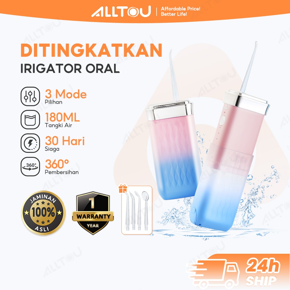 ALLTOU Water Flosser Portable Dental Floss Elektrik Semprotan Gigi Oral Irrigator USB Pembersih Gigi Berwarna merah muda