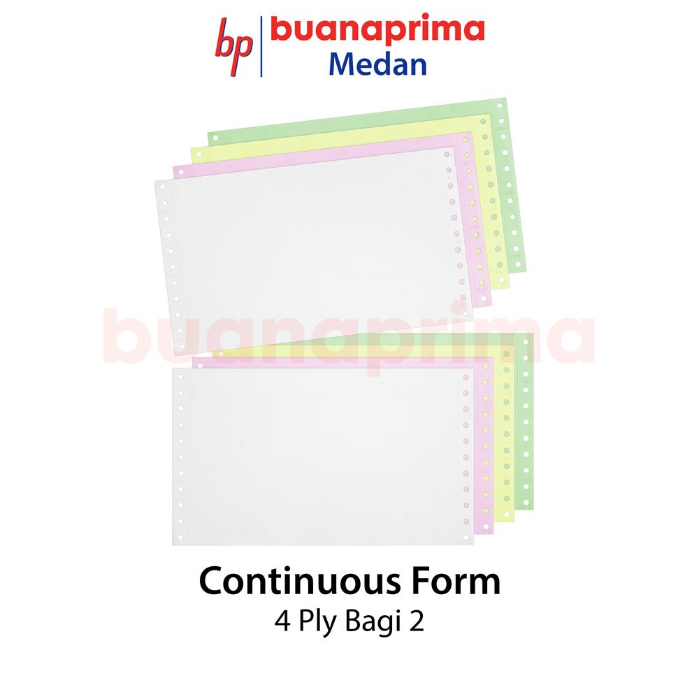 CONTINUOUS FORM 4 PLY 9.5 x 11" bagi 2 dan full Putih Merah Kuning Hijau Kertas Computer NCR