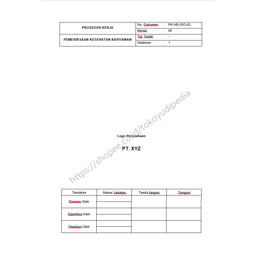 Contoh/Template Prosedur Medical Check Up SMK3 ISO 45001:2018