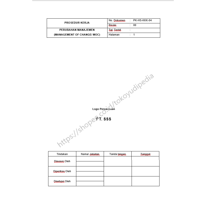 Softcopy Contoh/Template Prosedur Perubahan Manajemen SMK3 ISO 45001:2018