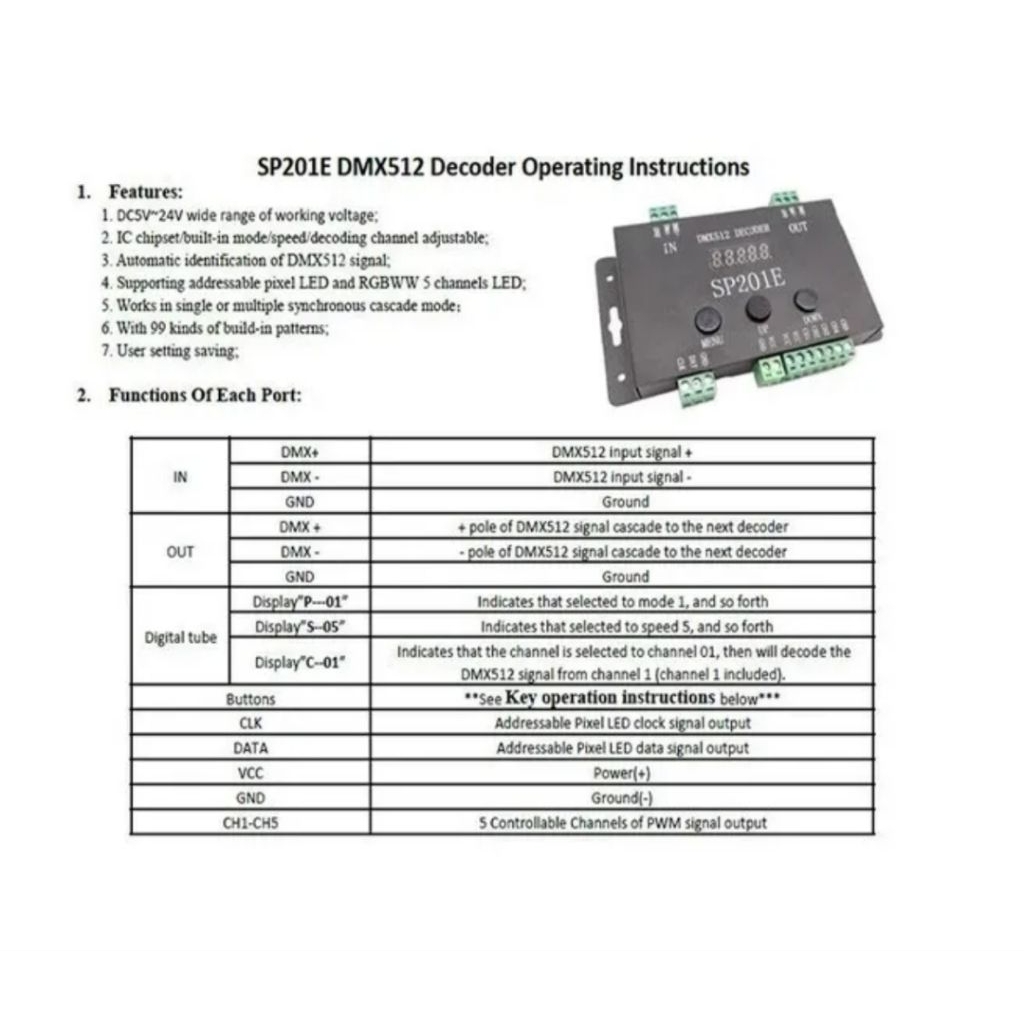 Controller RGB IC DMX512 Decoder SP201E DC5v-24v