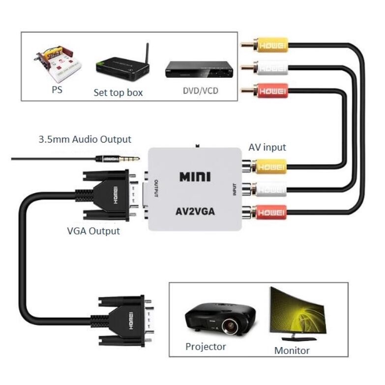Converter Adapter RCA to VGA / AV to VGA High Quality