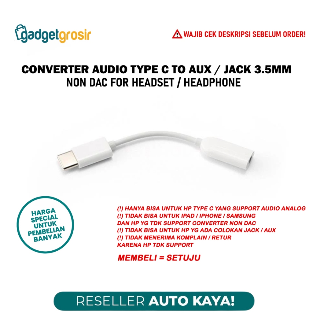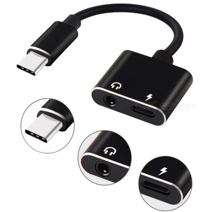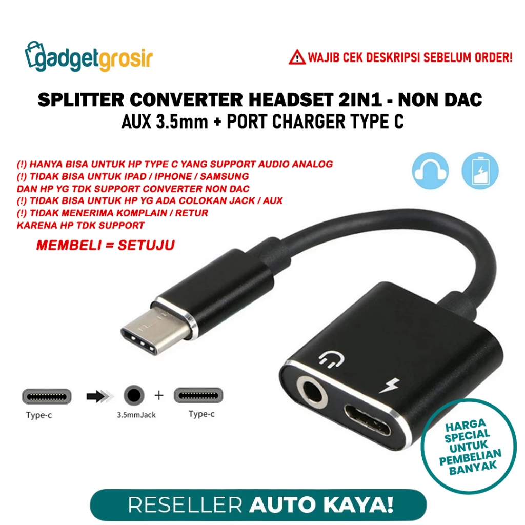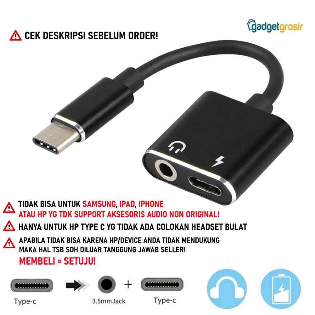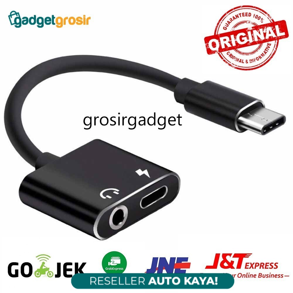 Converter Audio Headset 2in1 AUX 3.5mm + Port Charger USB Type C Adapter Sambungan Earphone Headphone Tipe C to Jack 3.5mm Charging Port Type C For HP Tab