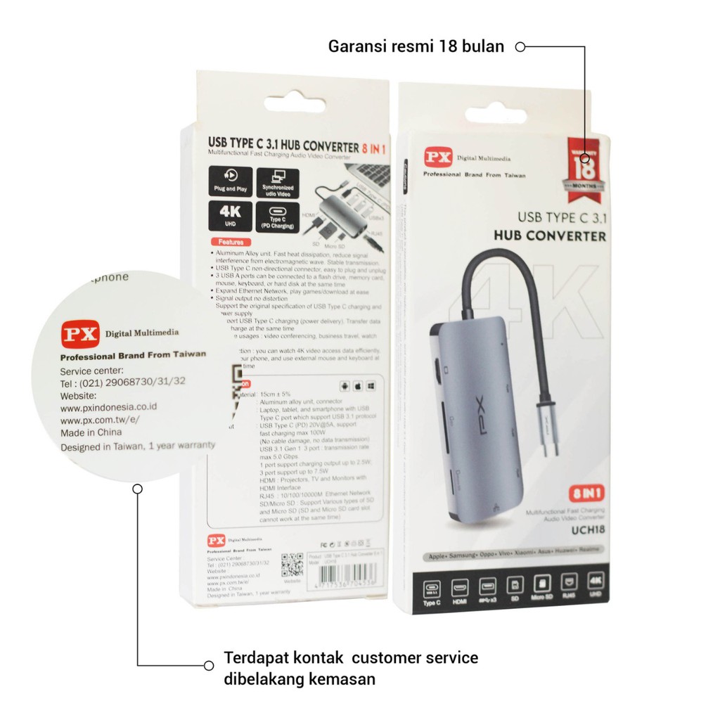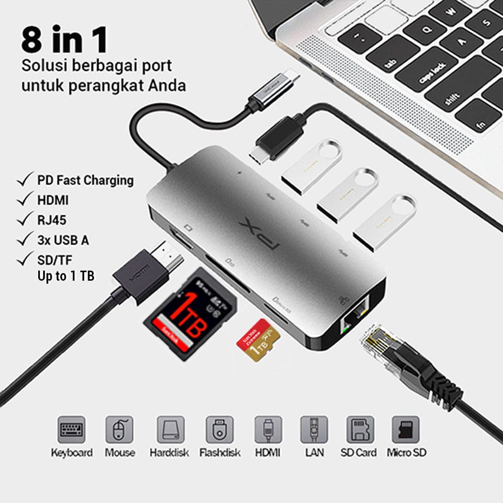 Converter Hub Adapter 8 in 1 4K USB Type C 3.1 USB HDMI PX UCH18
