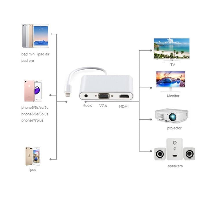 Converter Lightning To HDMI VGA Audio Iphone Ipad Adapter HDMI VGA