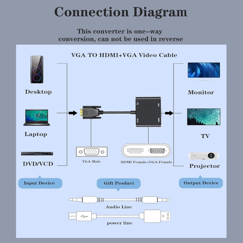 converter VGA to HDMI + VGA / Converter vga to vga hdmi / Adapter vga to hdmi vga 2in1 Converter VGA TO HDMI,VGA +Audio/ Adapter Splitter Vga Ke Hdmi Dengan Audio 3.5mm Untuk Pc Proyektor Hdtv 2 in 1