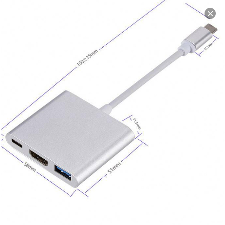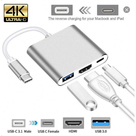 Converter Type-C 3 in 1 – HDMI USB 3.0 PD Fast Charging Laptop Macbook Android 4K Adapter