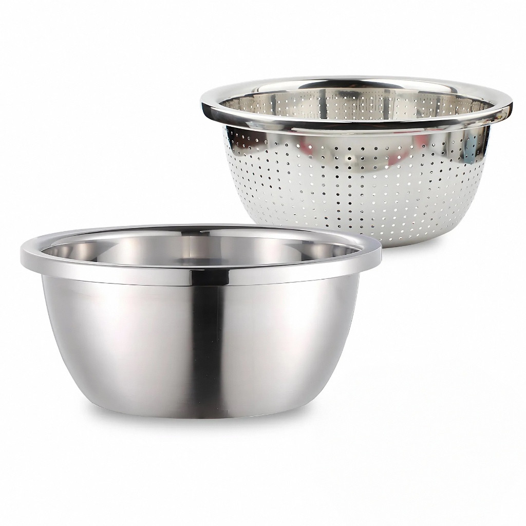 Cookhen Baskom Set 5in1 Wadah Baskom Stainless Baskom Cuci Beras Stainless Saringan Baskom Stainless Baskom Bolong Stainless-COD