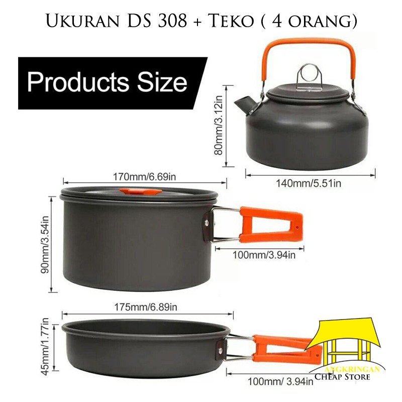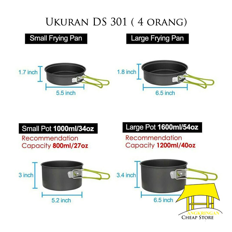 Cooking Set Nesting DS 308 DS 301 DS 200 DS 500 DS 101 Set Alat Masak Camping Outdoor Mendaki Gunung 2-5 Orang