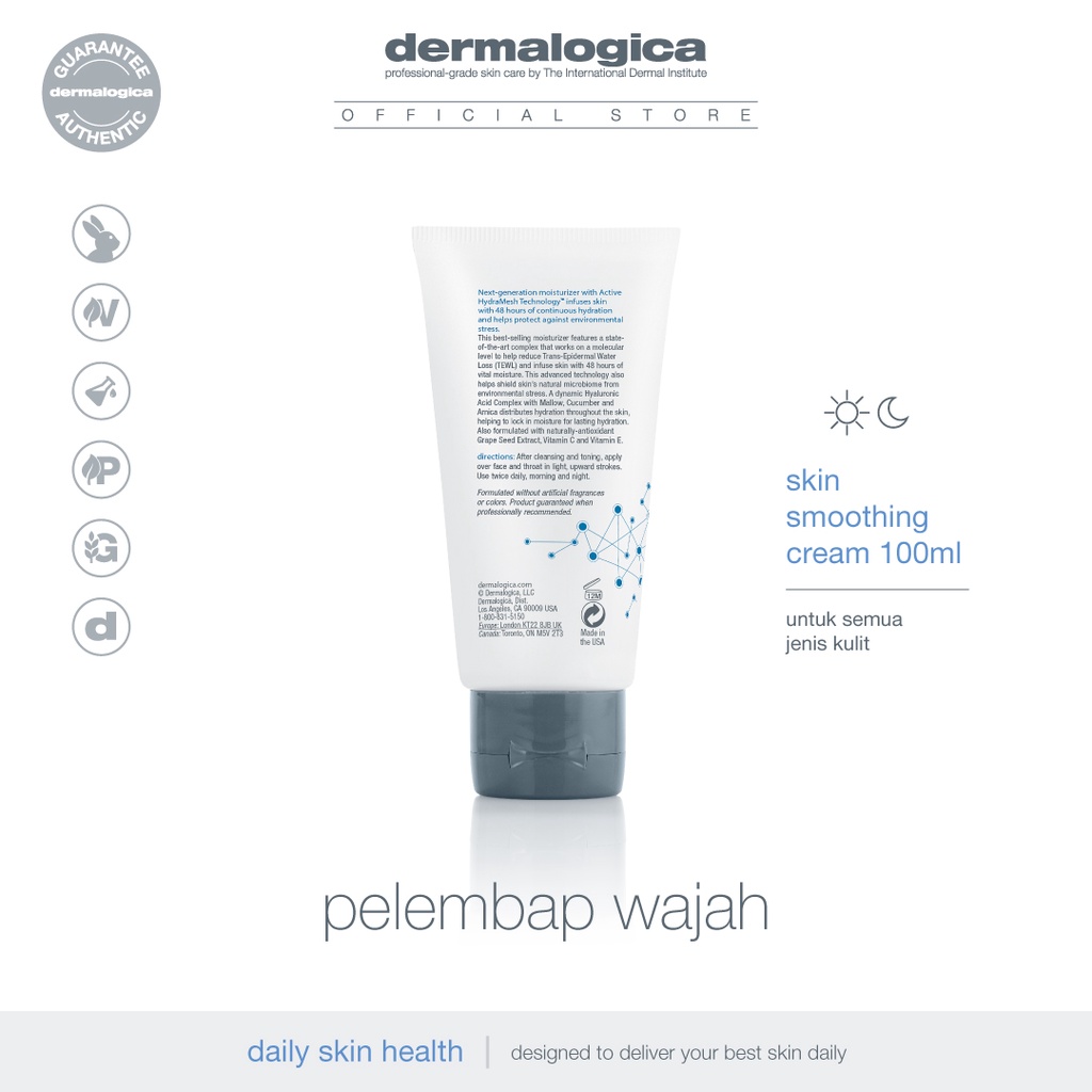 DERMALOGICA Skin Smoothing Cream - Krim Pelembab Wajah / Pelembab untuk kulit Normal/kering [ Hyaluronic Acid Complex with Mallow | Cucumber | Arnica | Grape Seed Extract, Vitamin C and Vitamin E ]