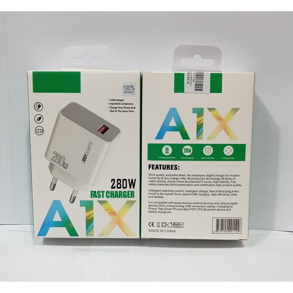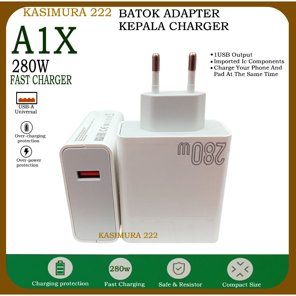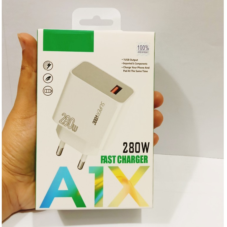 A1X Batok Adapter Kepala Casan Hp USB-A Univelsal 280W Fast Charger Super Vooc Support Fast Charging
