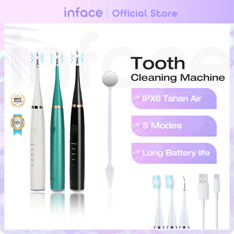 Inface Dental Scaling Alat Pembersih Karang Gigi Sonic Elektrik 1 Set 4 Modes Perawatan Dan Pembersih Karang Gigi Dental Remover With Light