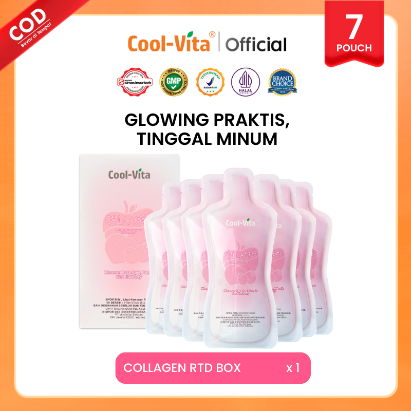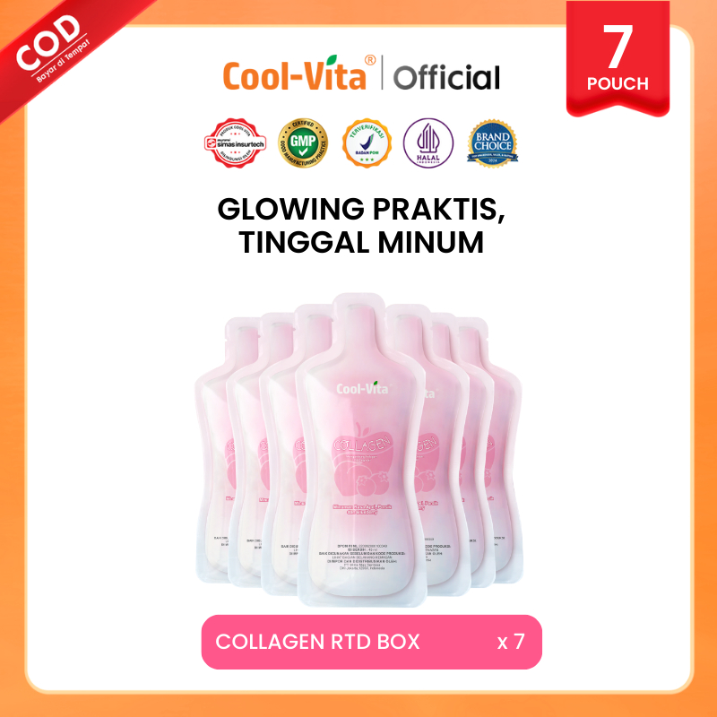 Coolvita 7 Pouch Collagen Premium Langsung Minum Pencerah Kulit Glowing 3000mg Beauty Drink Rasa Apel, Persik & Blueberry