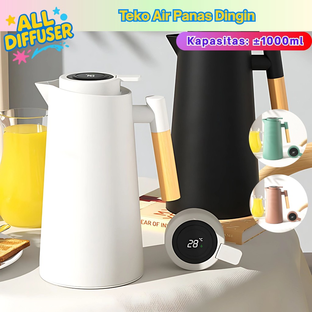 [ ALLDIFFUSER ] Teko Air Panas Dingin Dengan Alat Ukur Suhu Termos Air Panas Tahan Dingin Vacum 1L dengan Gagang kayu
