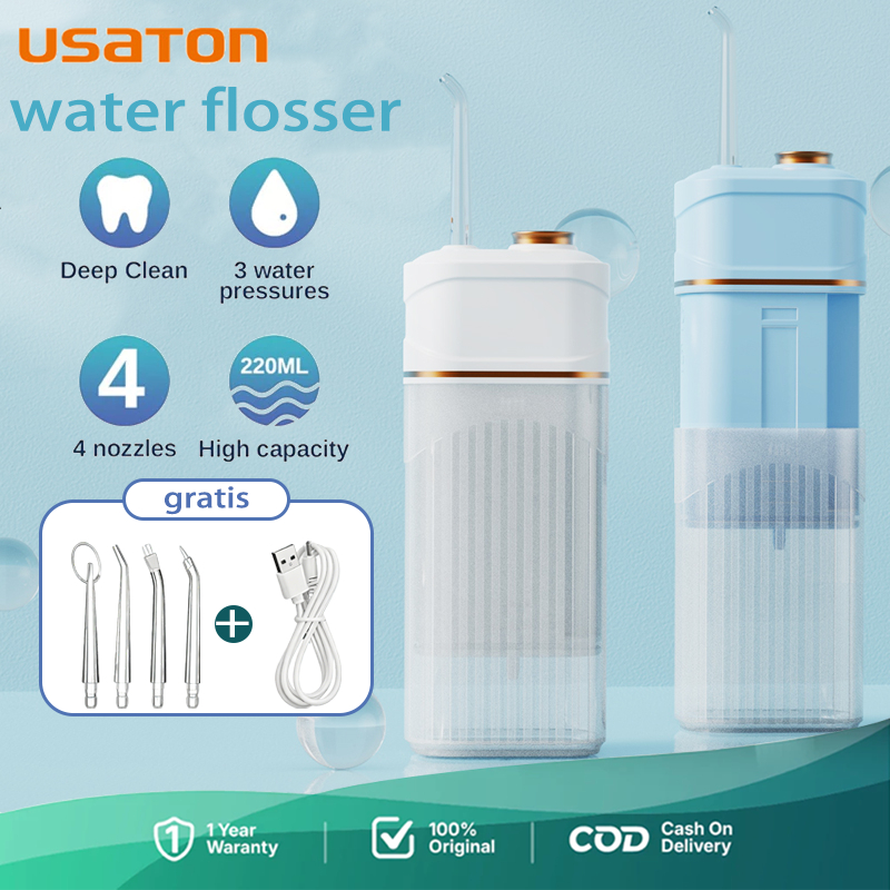 USTON Water Flosser 160ML Foldable Water Floss Gigi Oral Lrrigator Pembersih Gigi 3 Mode Oral Care Dental Scaler Teeth Portable USB Rechargeableeaner Portable