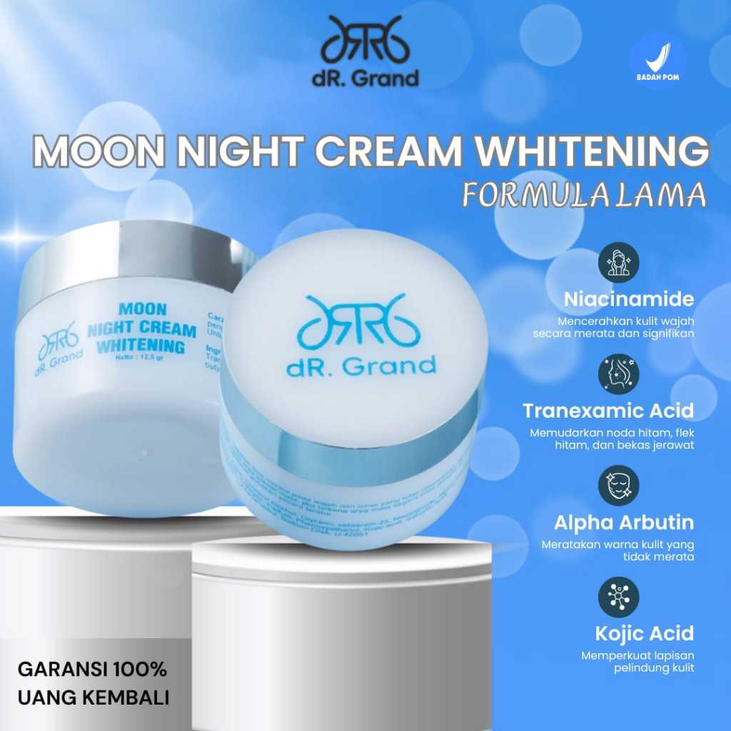 [ BPOM ] Moon Night Cream by dR. Grand Krim Malam Pelembab | Mencerahkan Muka | Anti-Penuaan | Pencerah Wajah