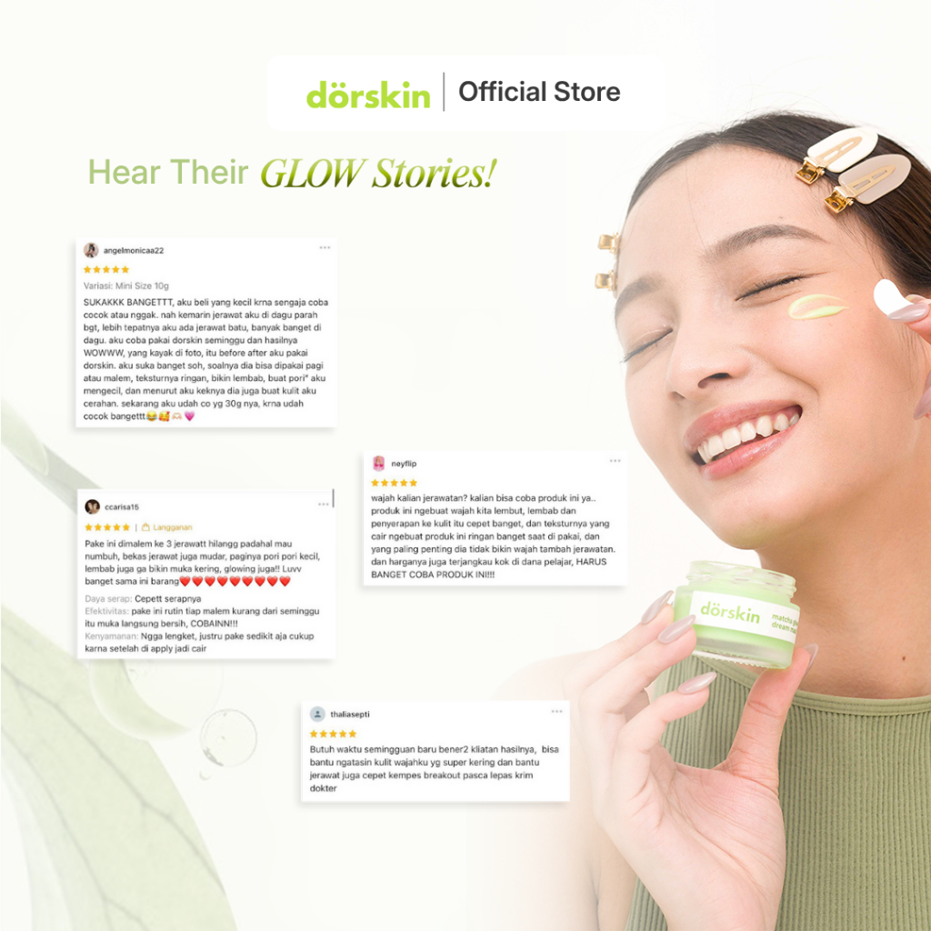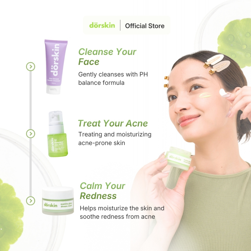 Dorskin Double Moisturizer Calm & Glow Skincare Pack – Dorskin Matcha Glow Dream Mask + Pink Bliss Moisturizer 2in1 Acne Care + Brightening