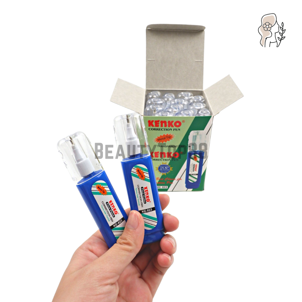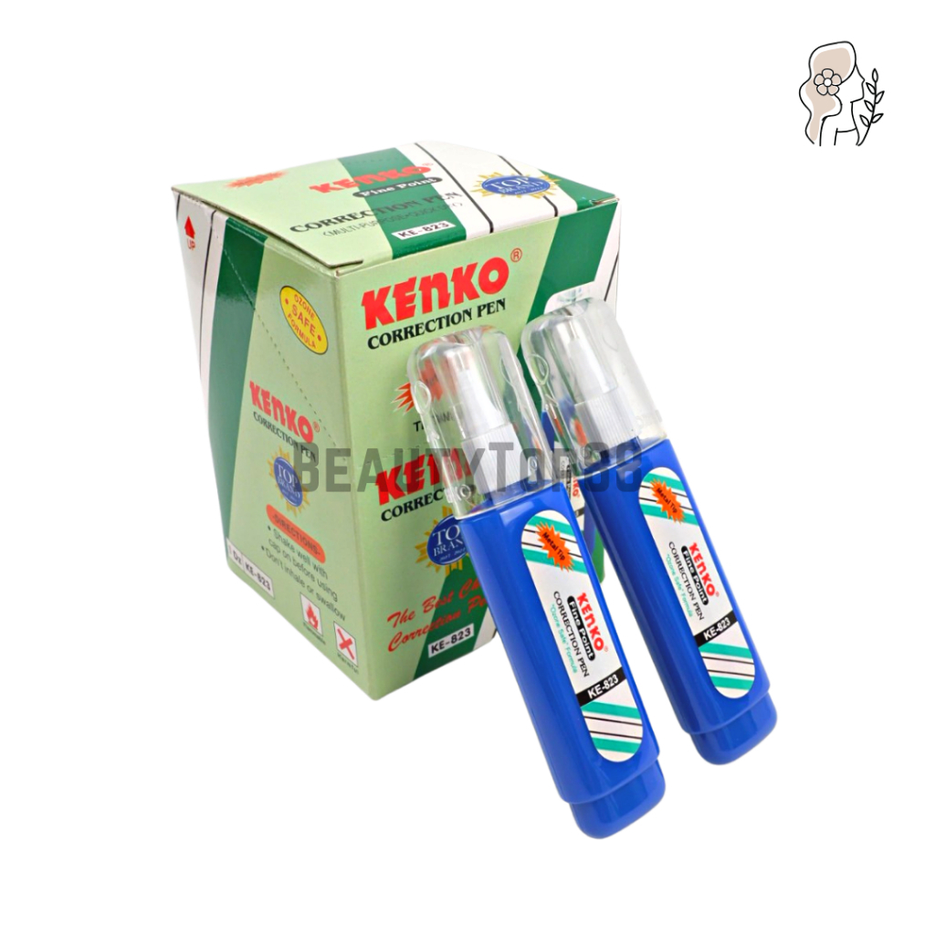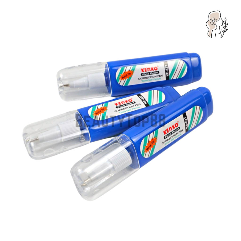 Correction Pen Kenko KE-823 - Tip Ex Cair Gepeng Metal Tip - Cairan Koreksi Penghapus Botol Biru KE823