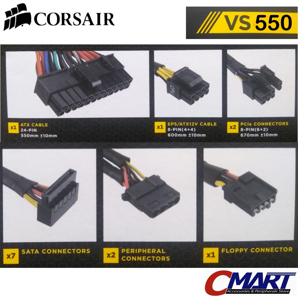 Corsair VS Series VS550 PSU ATX Power Supply True Gaming 550W 550 watt