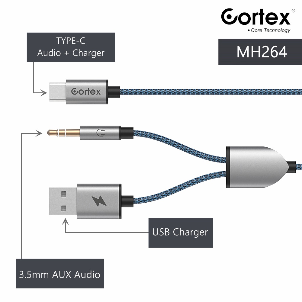 Cortex Power - MH264 Type-C to Jack 3.5mm with USB Charging / Tipe C Audio + Charger Kabel 1.2Meter