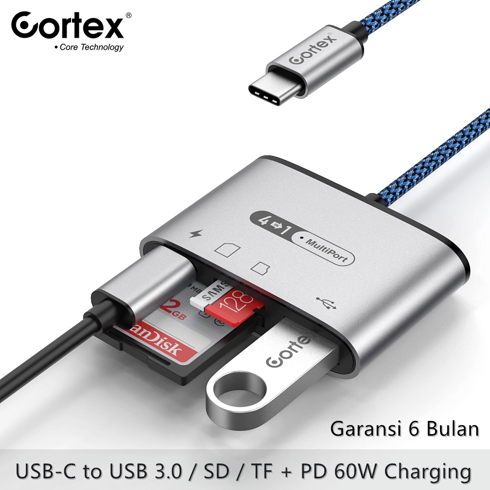 Cortex Power - MH371 MH372 HUB- USB C/Type-C To USB 3.0 + SD/TF Card + 60W Charging 3in1/4in1 Reader Adapter