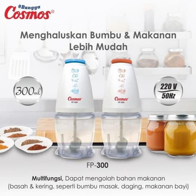 Cosmos Fp300 Food Processor Blender Mini - Biru (100% Ori) - Promo !