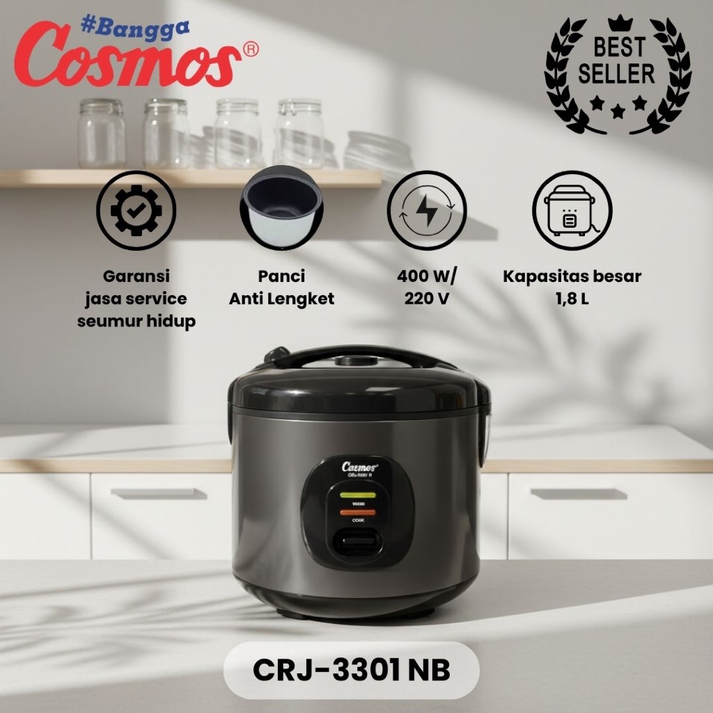 Cosmos Rice Cooker Non Stick CRJ-3301 NB - 1.8L