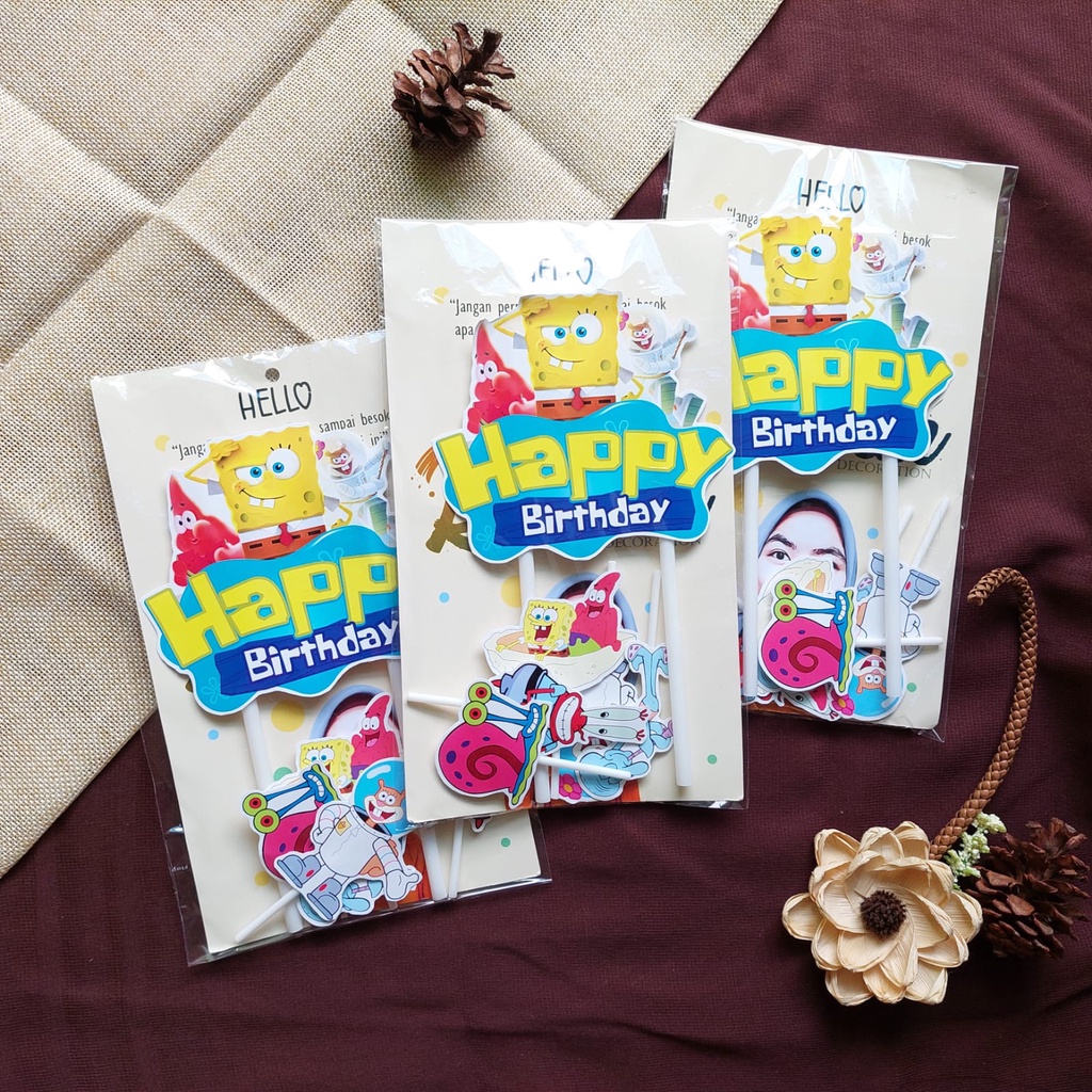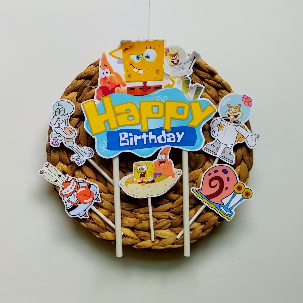Costum Nama / Foto / TopperCake Spongebob 3 / Hiasan Kue / Cake Topper