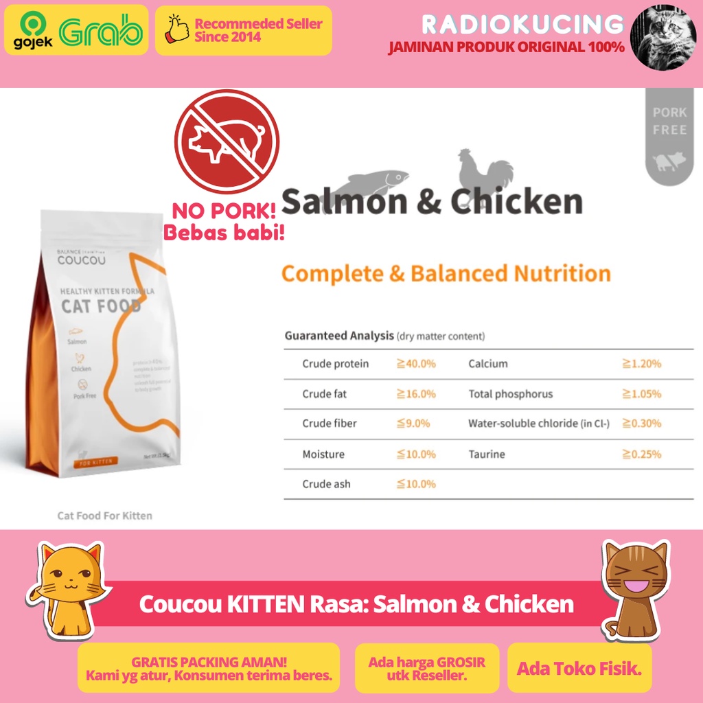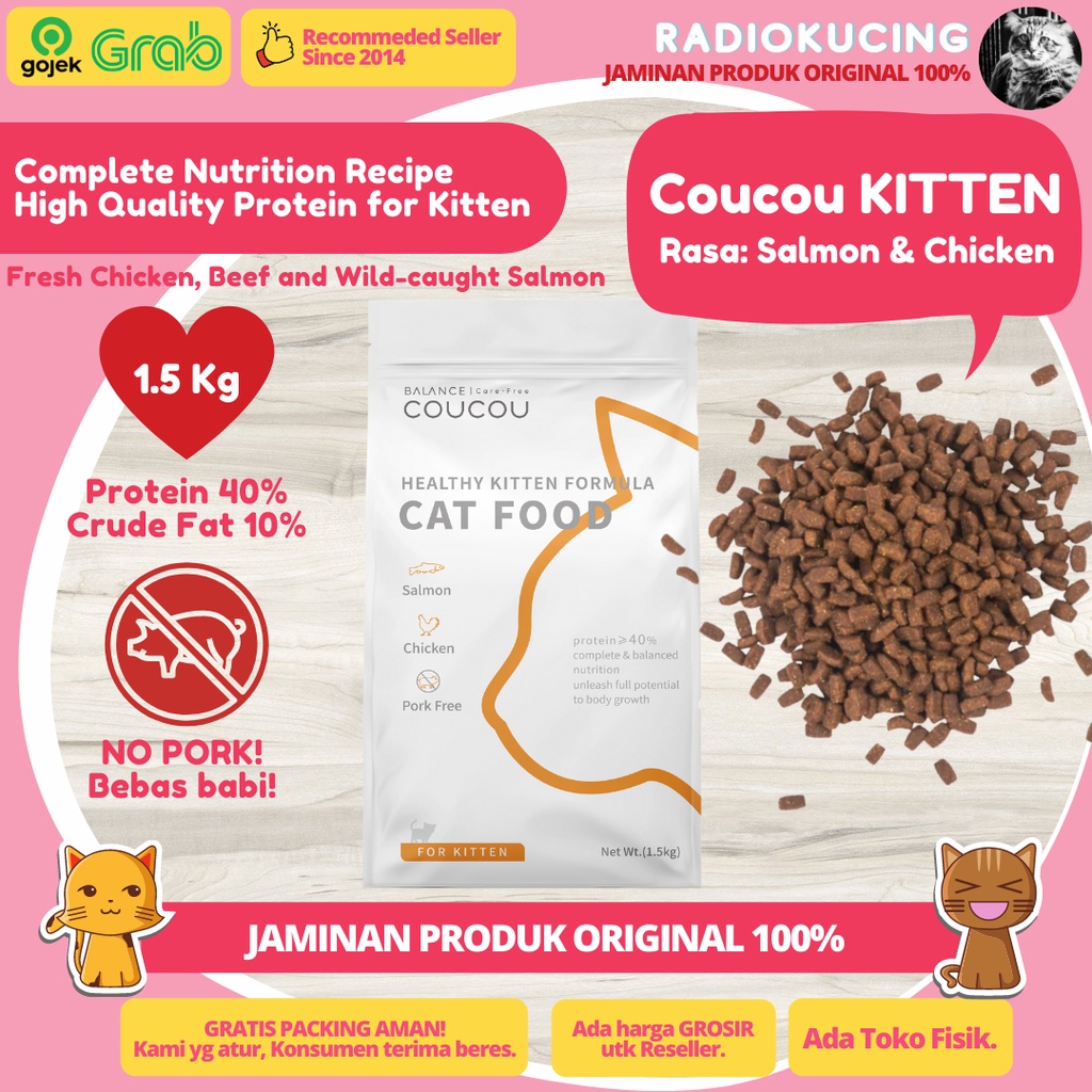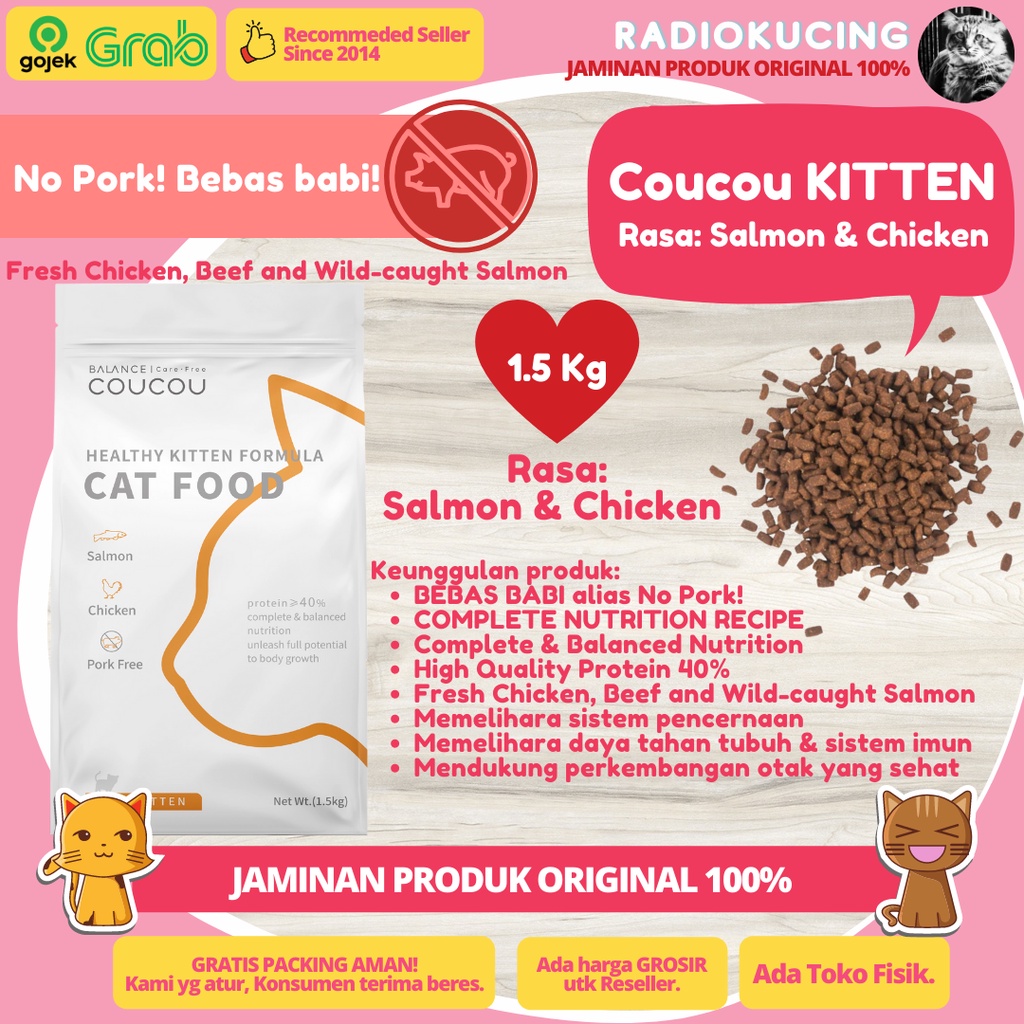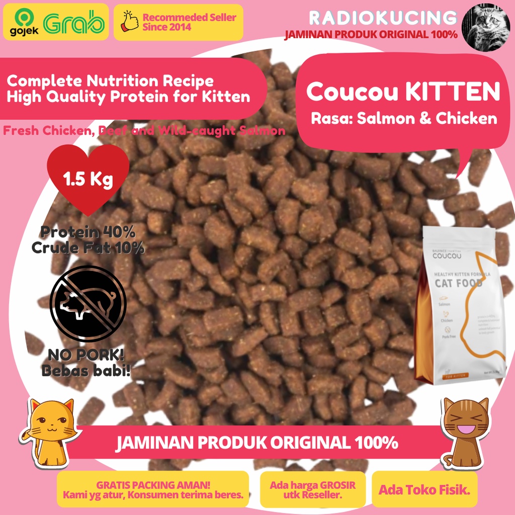 Coucou Kitten 1.5 Kg Salmon & Chicken Dry Food Makanan Kucing Cou Cou 1,5 Kg [ JUWIES RADIO KUCING ]