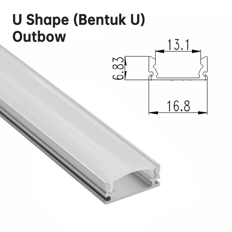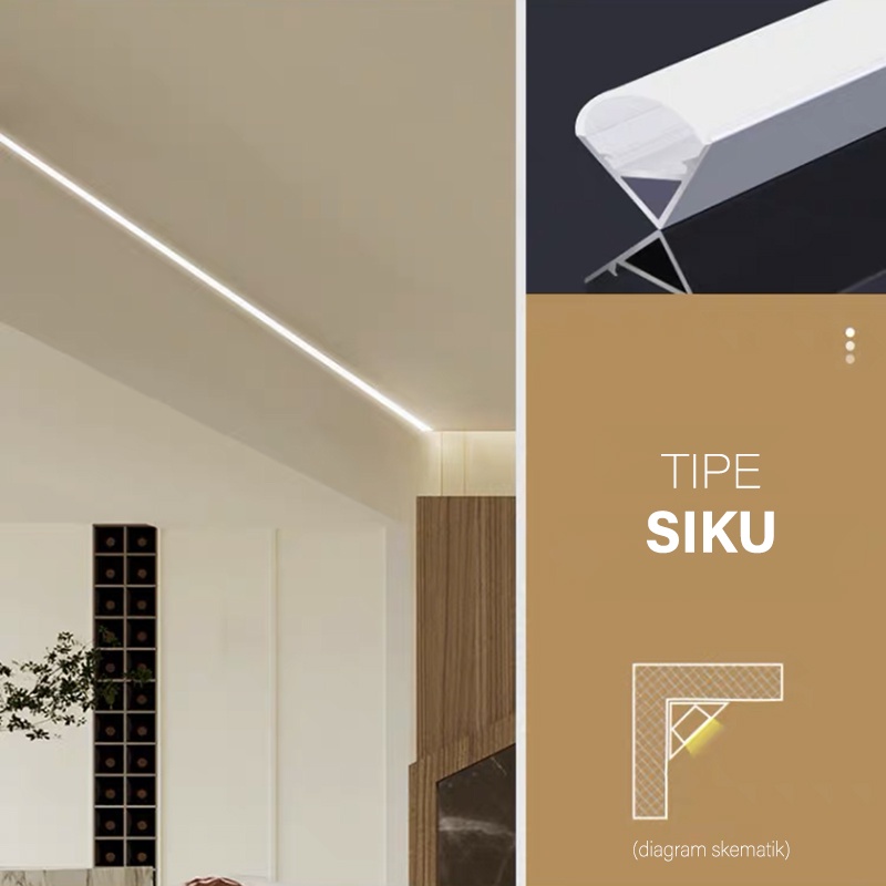 Cover Lampu Aluminium Kap Led Strip 1m / 100 cm Tapeguard Led Light trough Pelindung Lampu Strip