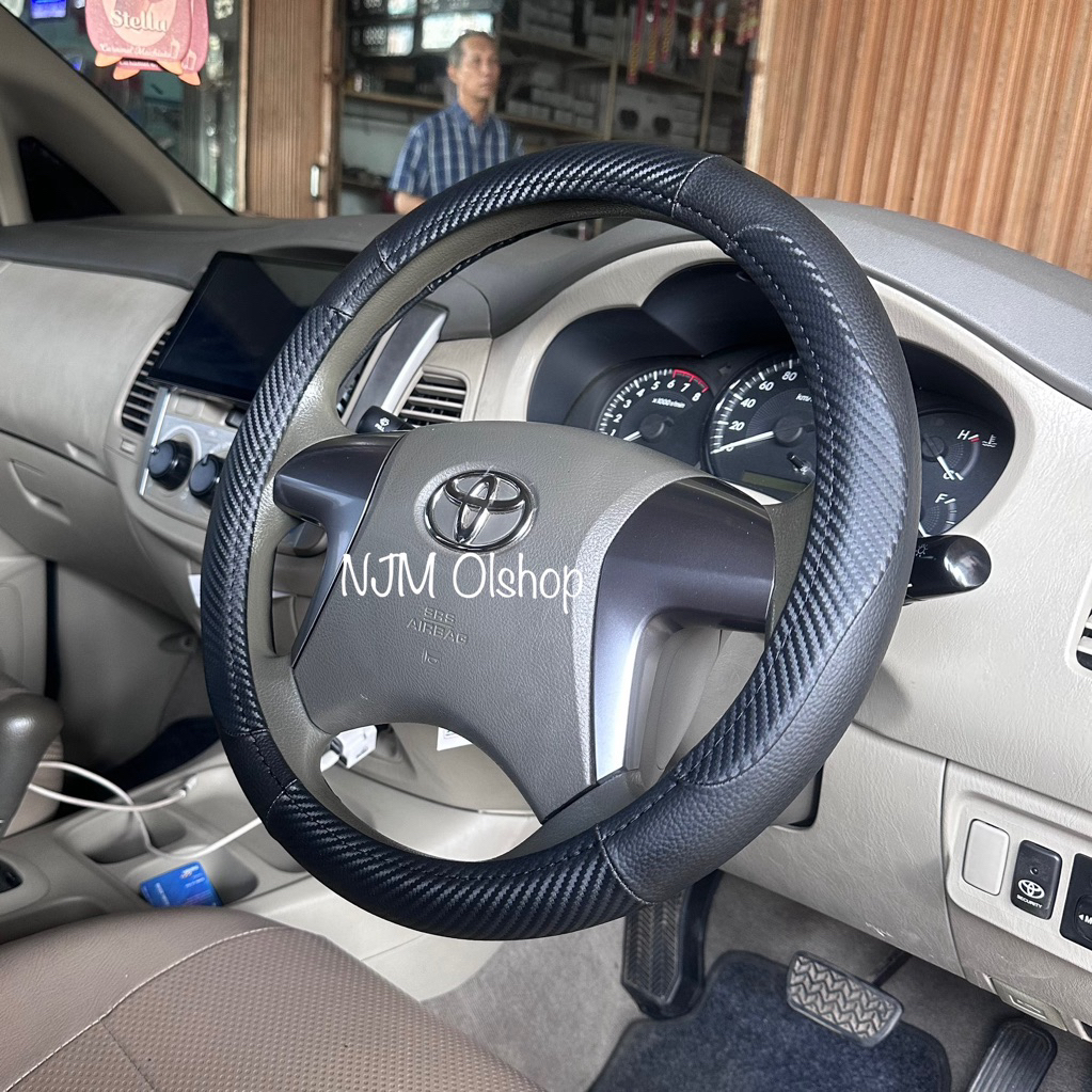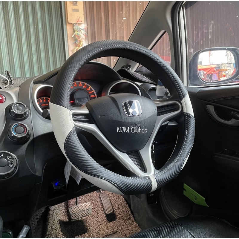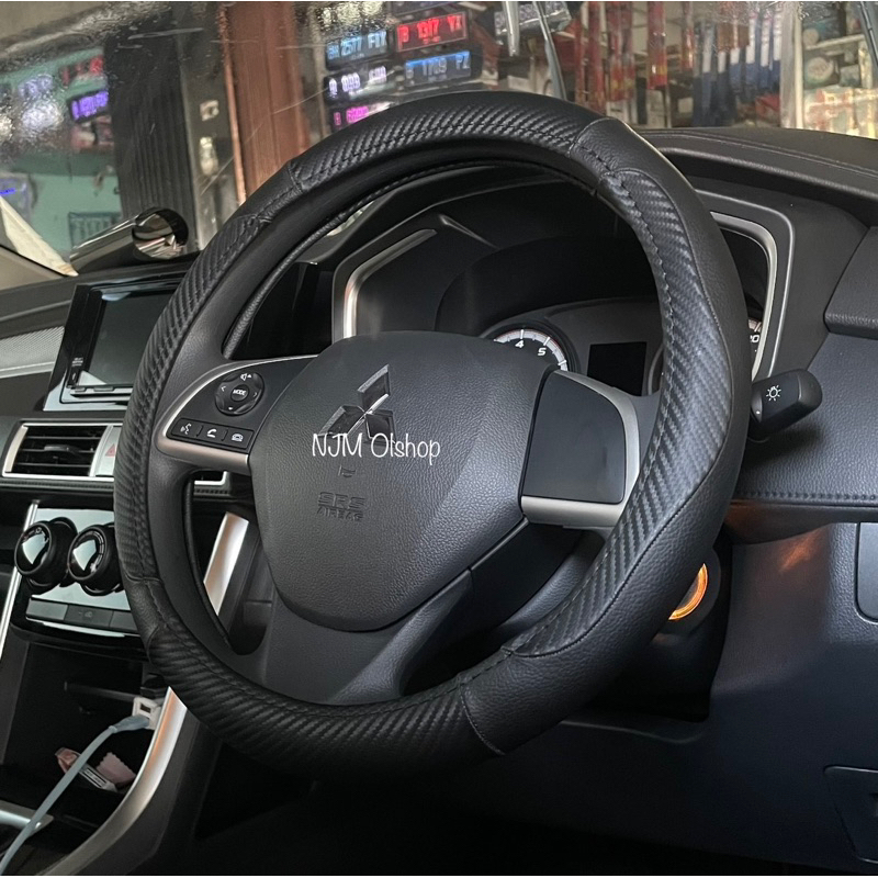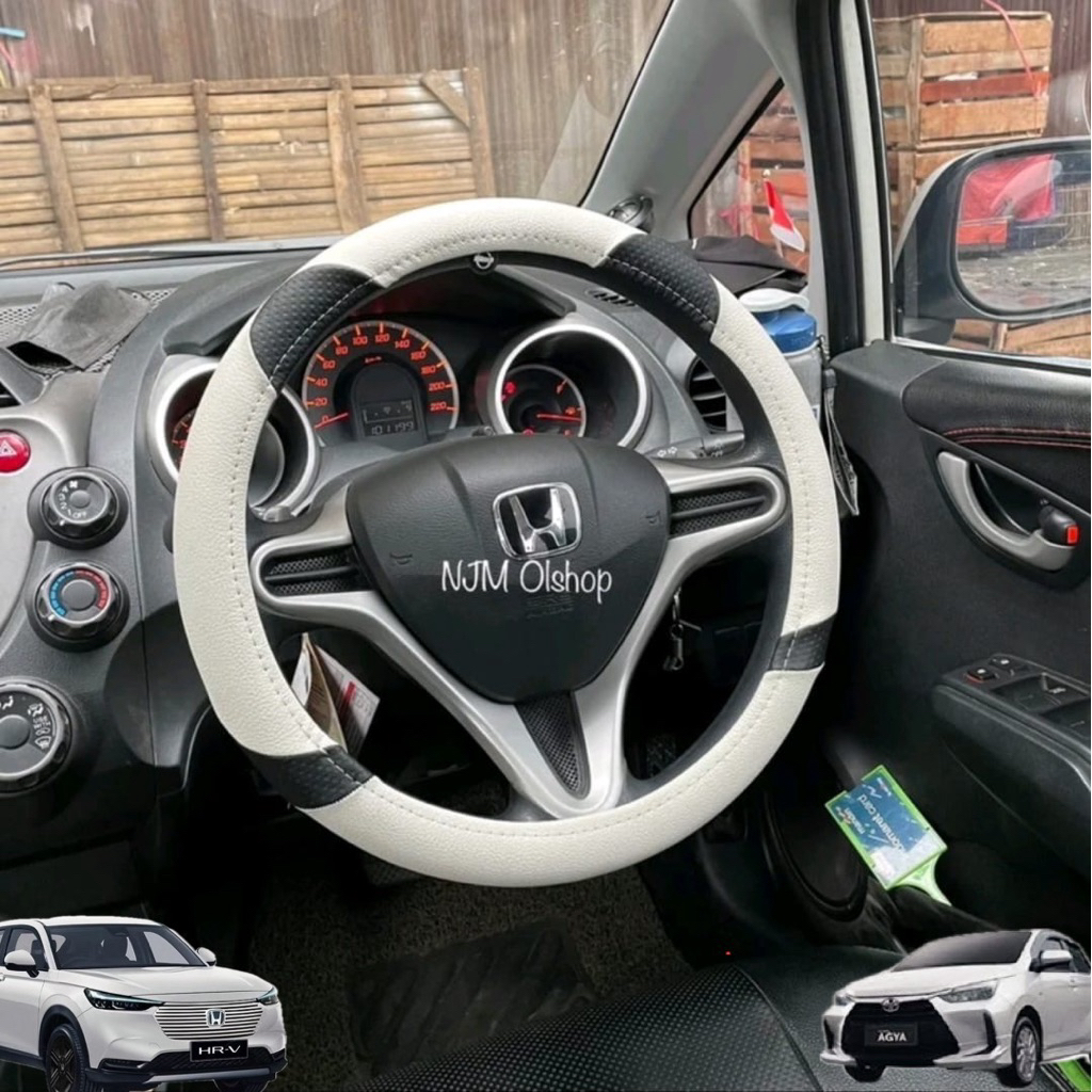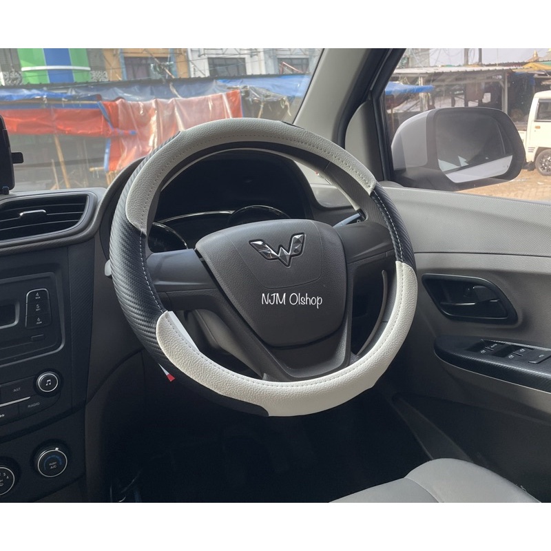 Cover Sarung stir mobil BLACK & WHITE Series bahan MBtech mix Karbon - Universal
