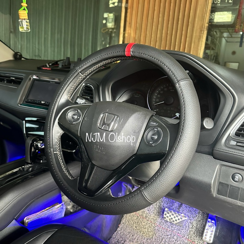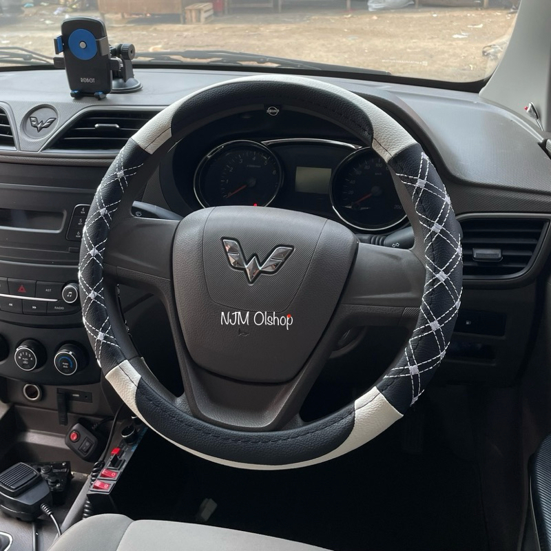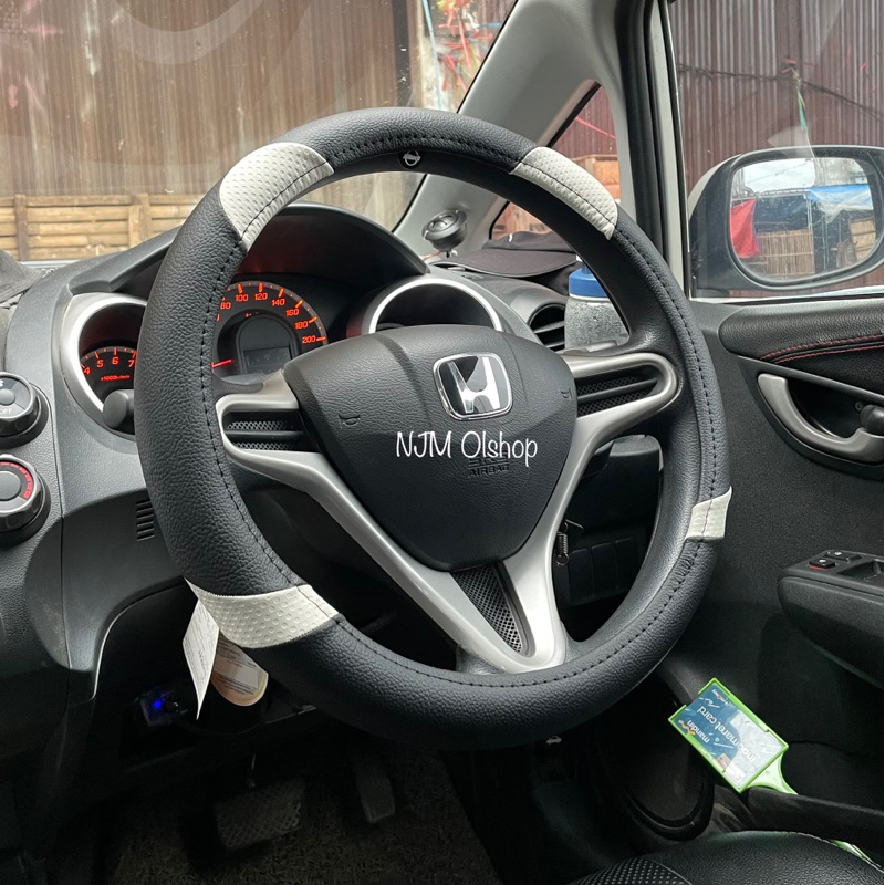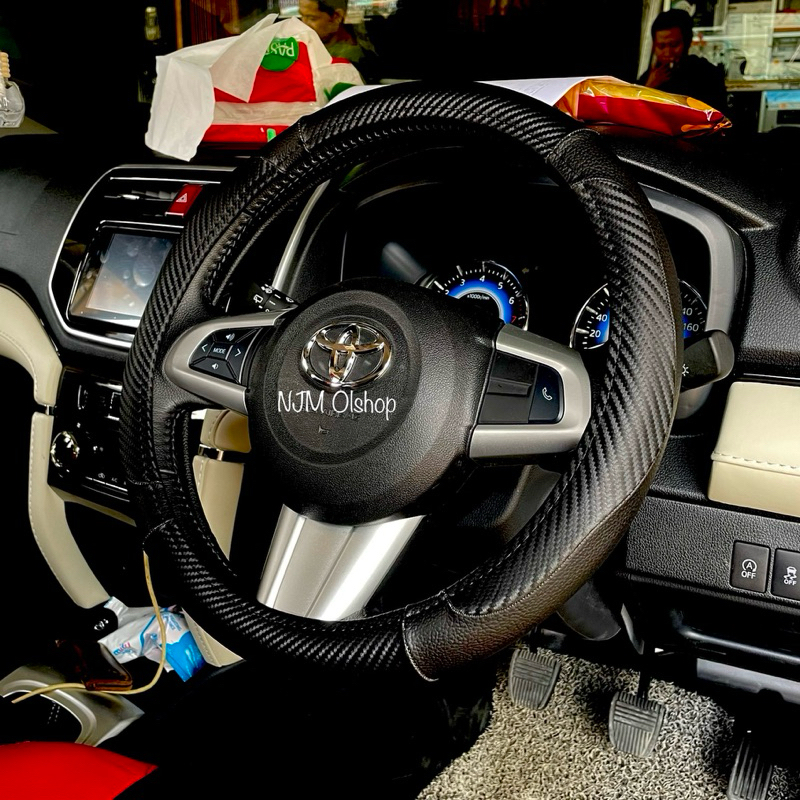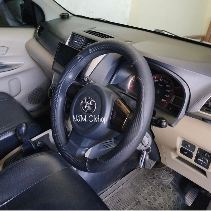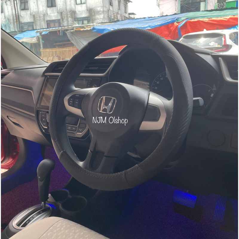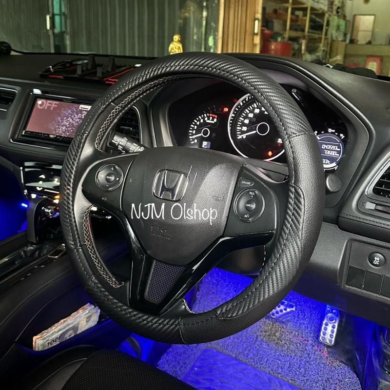 Cover Sarung stir mobil BLACK & WHITE Series bahan MBtech mix Karbon - Universal