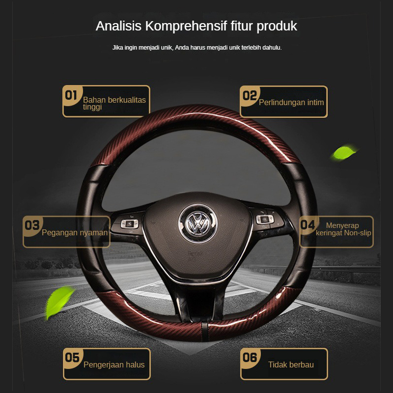 (COD) Cover Stir Mobil/Universal Serat kulit Elastis Sarung Setir Mobil Racing 37-38CM Avanza