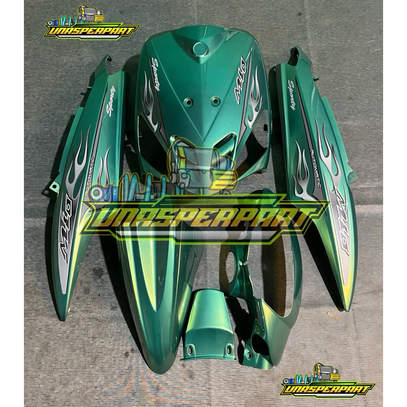 Cover full body halus yamaha mio sporty aliens green plus striping (warna castom)