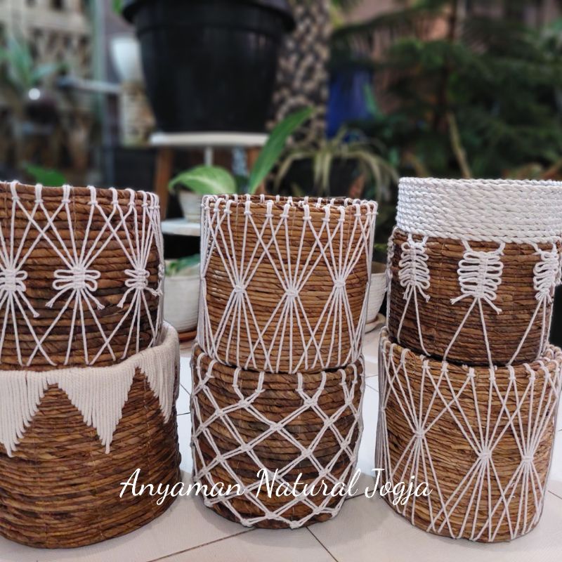 Cover pot rajut / pot anyaman / pot macrame / pot banana macrame/ pot pelepah pisang / anyaman interior / pot rustic