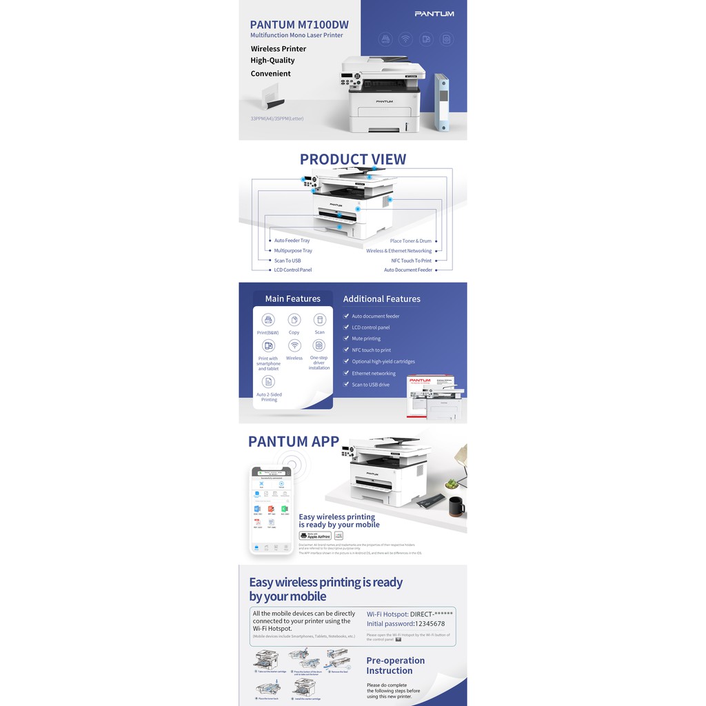 Printer Multifungsi Pantum M7100DW Print, Scan, Copy ,Wifi & Duplex TERMURAH
