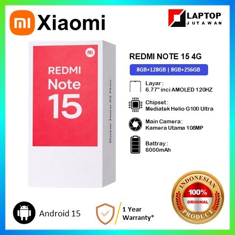 XIAOMI Redmi NOTE 15 4G 8GB+256GB|8GB+128GB MediaTek Helio G100 AMOLED 6.77” Inch 120hz