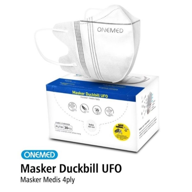masker medis duckbill ufo 4ply onemed isi 30 per box