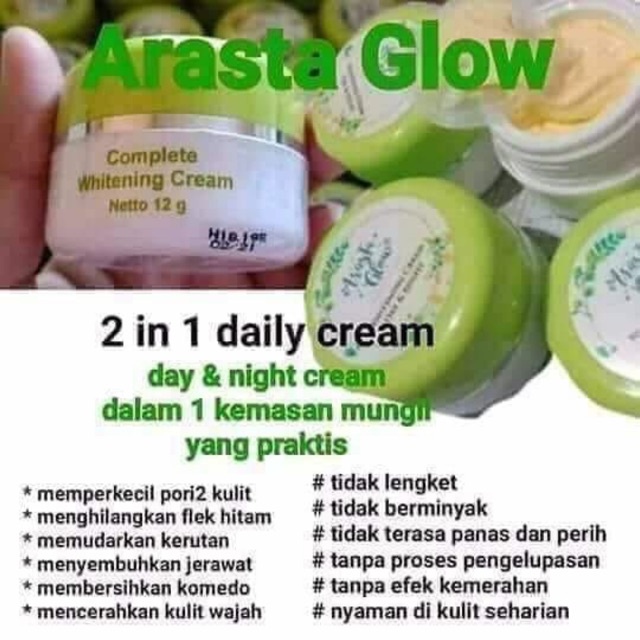 ARASTA GLOW COMPLATE WHITENING DAY ANF NIGHT CREAM 100% ORIGINAL wajah glowing / pelembab wajah pencerah / wajah/ pemutih wajah