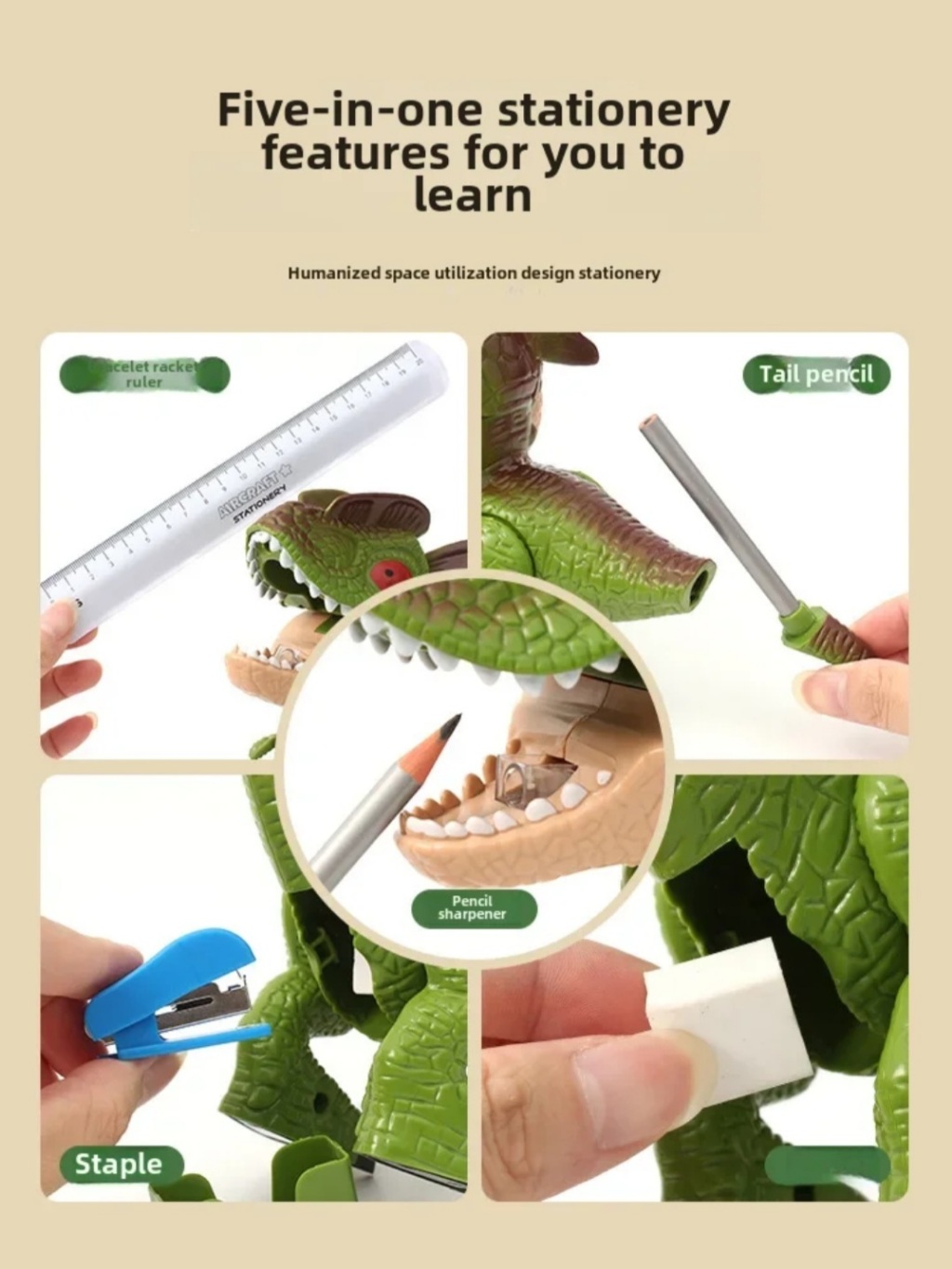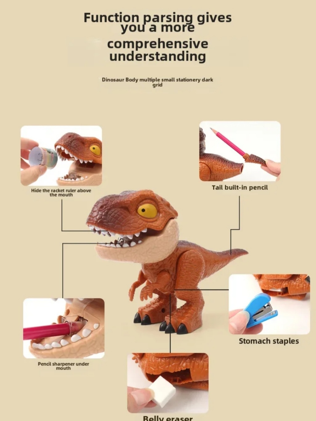 [Hero] Kotak Tempat Pensil Boneka Dino Tempat Penyimpanan Peralatan Alat Belajar Serbaguna - Dino Stationery 5 in 1