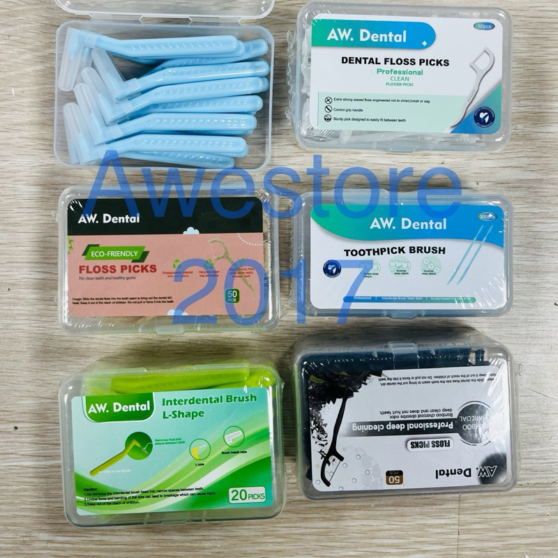 AW Dental Interdental Rubber Soft Pick Brush Curved Sikat Tusuk Gigi Karet Behel Gum Softpick Toothbrush Orthodontic Pembersih Kawat Platypus Floss Plak Ortho Oral Care Gum Health